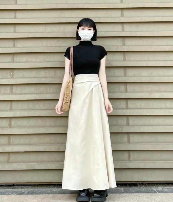 中性風的穿搭,就與裙子無緣了?這是誰說的,就算是短髮女生,也可以有溫柔的一面,黑色正肩短袖上衣,加上修身的版型,輕鬆將上半部分的身材比例修飾得極佳,搭配淺色高腰a字半身長裙,雖然是比較長的款式,但高腰的設計下,將下身的比例拉得很修長了。