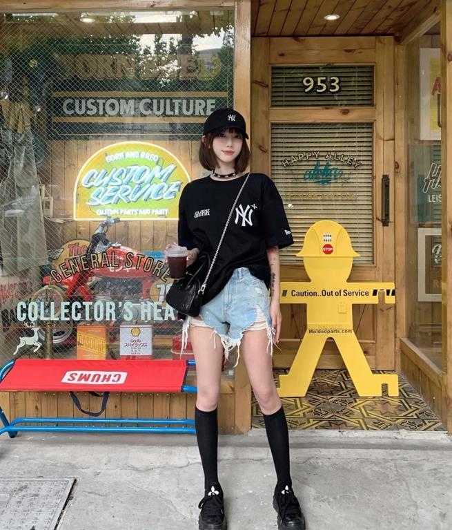 最近很喜歡這種簡單又不失時尚的穿搭,寬鬆的t恤+毛須牛仔短褲,這樣的搭配看起來就非常休閒和時髦。很適合日常穿,如果覺得這樣的搭配比較顯單調的話,可以再佩戴一頂棒球帽,既可以遮擋紫外線,又拗了造型。