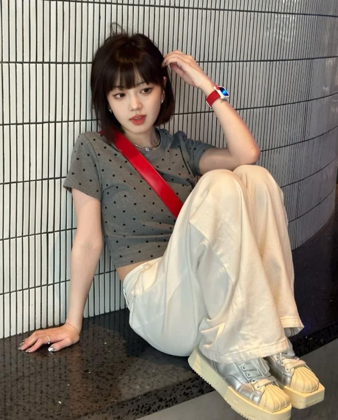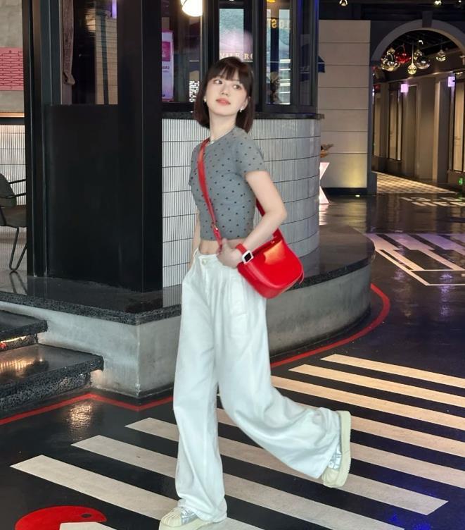 喜歡甜酷風的女生,說什麼也要試試這一套,空氣劉海齊脖短髮,面對炎熱的夏季就是很合適呢,甜美減齡又不失可愛。波點短款t恤+白色闊腿長褲,一簡一繁的組合,就是很時髦。