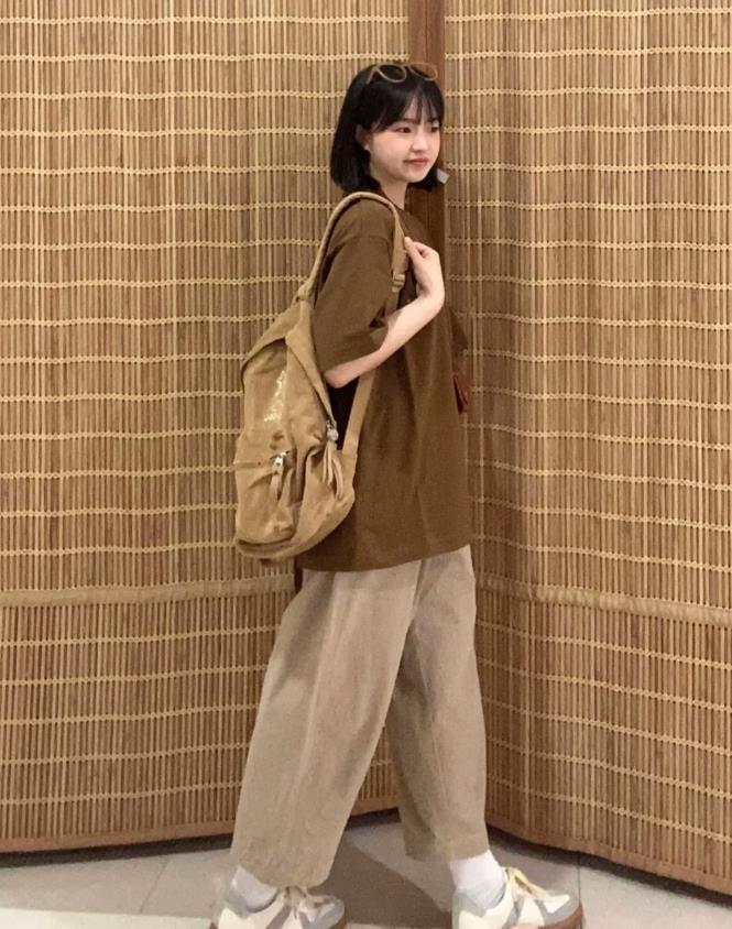 這一身棕色系的打扮,也太好看了吧?感覺瞬間就化身爲活力滿滿的女孩了,充滿日系少年的感覺,夏天這麼穿不僅舒適還帶着休閒氣息,同色系的搭配,真的很難讓人不愛。