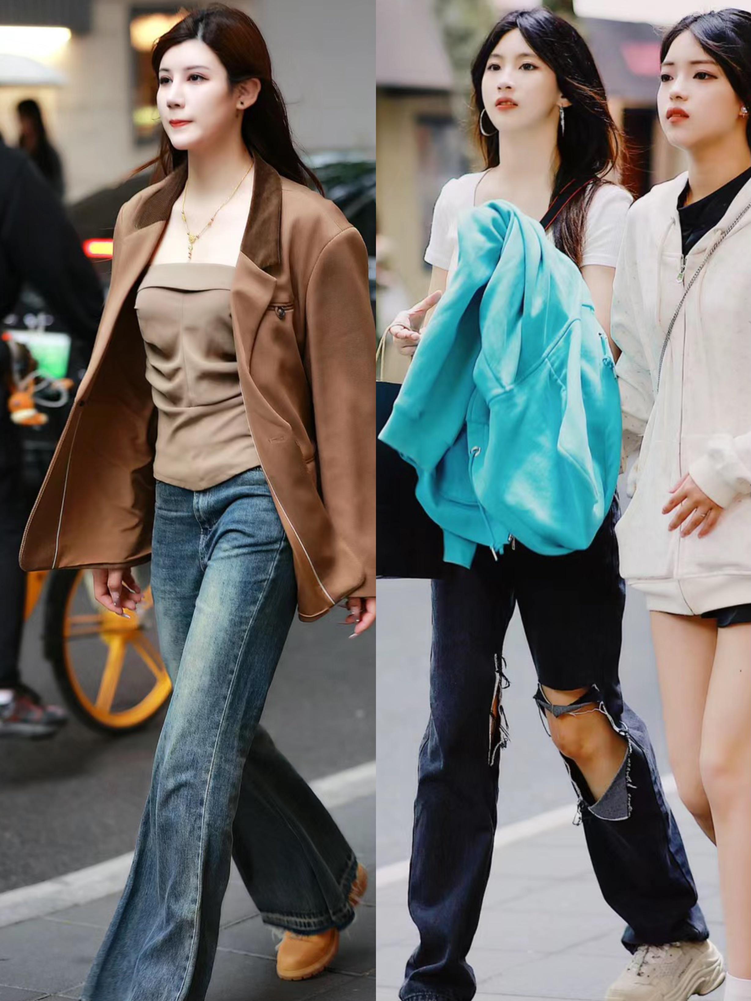 比如稍微寬鬆的牛仔褲,可以搭配破洞的設計,整體風格優雅大方。簡簡單單的寬鬆牛仔褲,配破洞剪裁就瞬間變得高級起來。