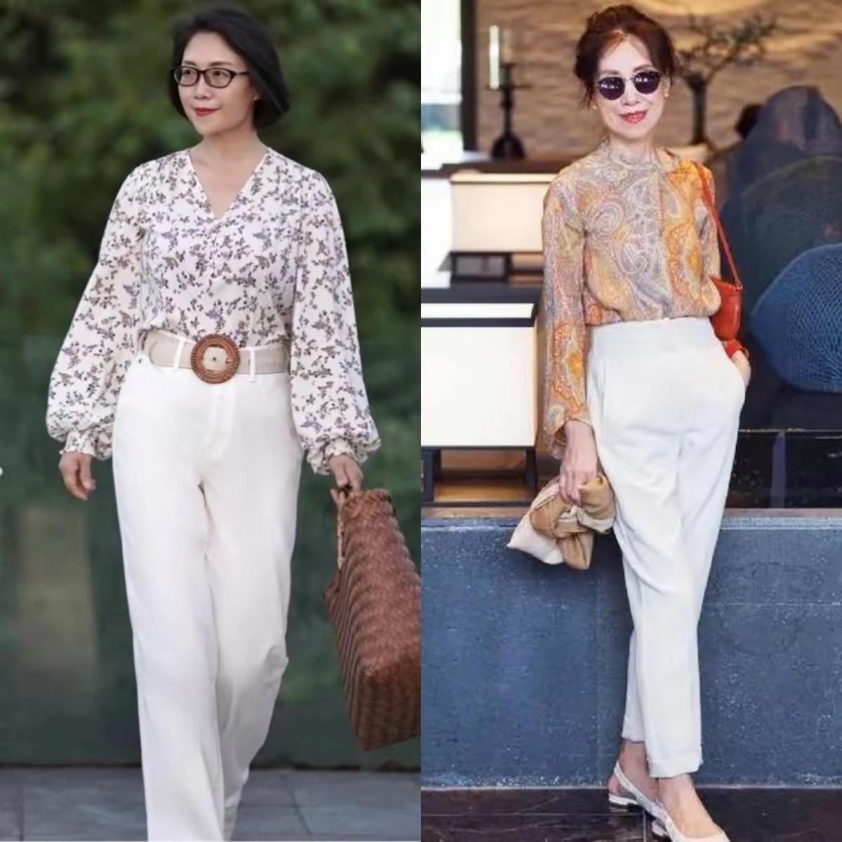 高腰的白色闊腿褲、或者白色錐形褲,都是比較實用的褲型。白色闊腿褲,寬鬆垂墜,即便是體型微胖也可以擁有挺拔感。白色錐形褲利落大氣,梨形身材也可以完美駕馭。