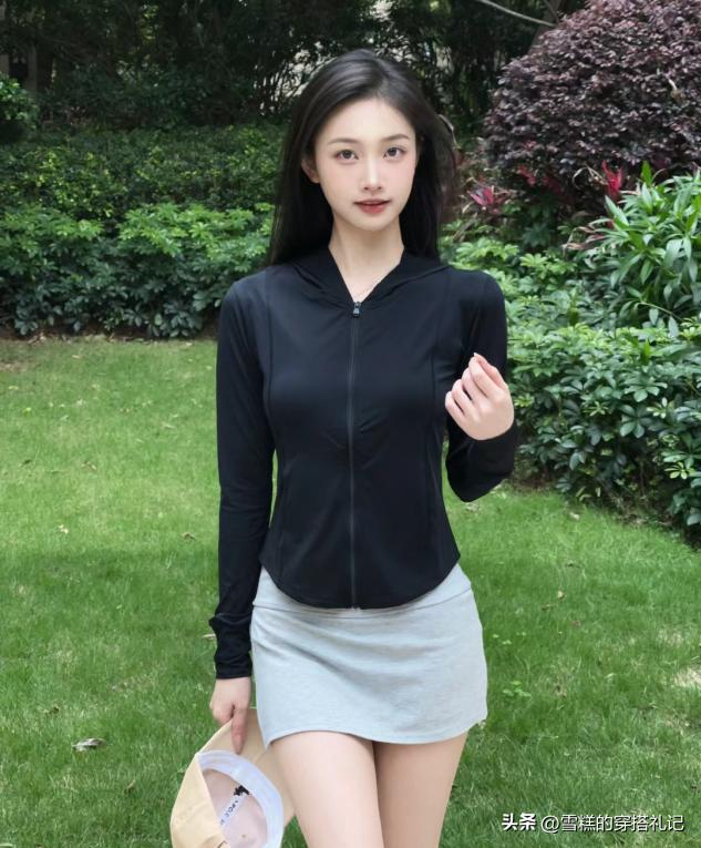 在穿超短裙的時候,瑜伽衫儘量選擇輕薄一些的材質,這樣上下都具有透氣感,整個人都非常的清爽,比如可以嘗試一下這種冰絲材質或者針織材質的單品。