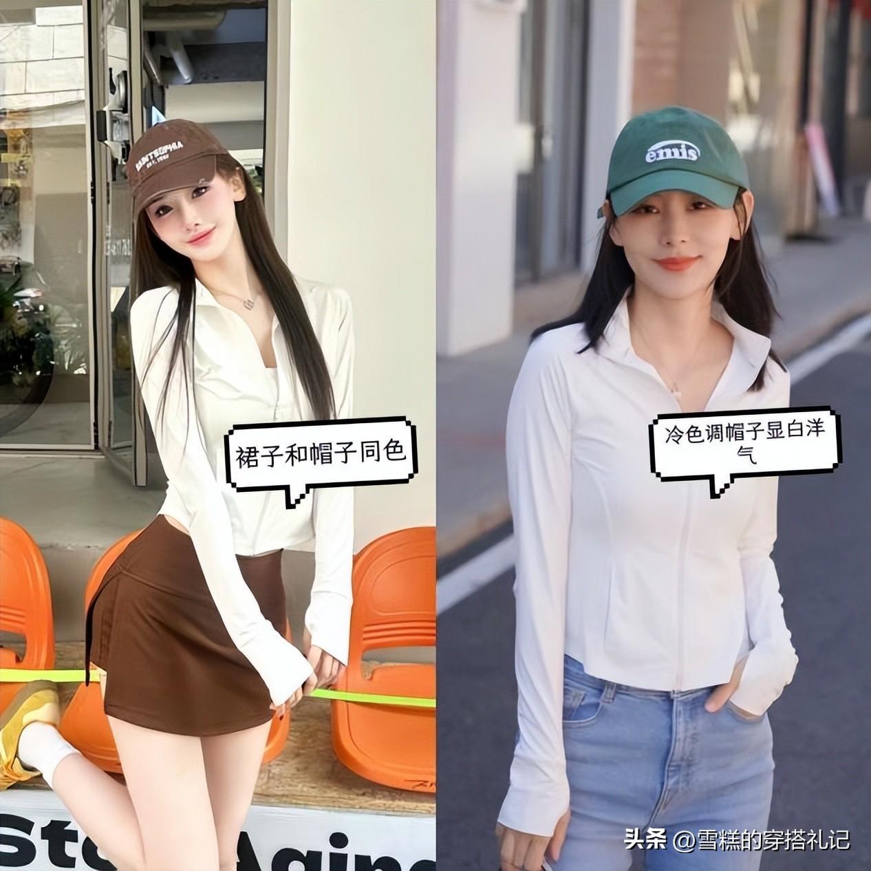 注意,帽子的顏色也需要大家多關注一下,和下裝同一個顏色的時候,整體會更加的洋氣,而黃黑皮女人也可以通過綠色或者藍色這些高飽和度的冷色調進行提亮,顯得膚色更加白淨一些。