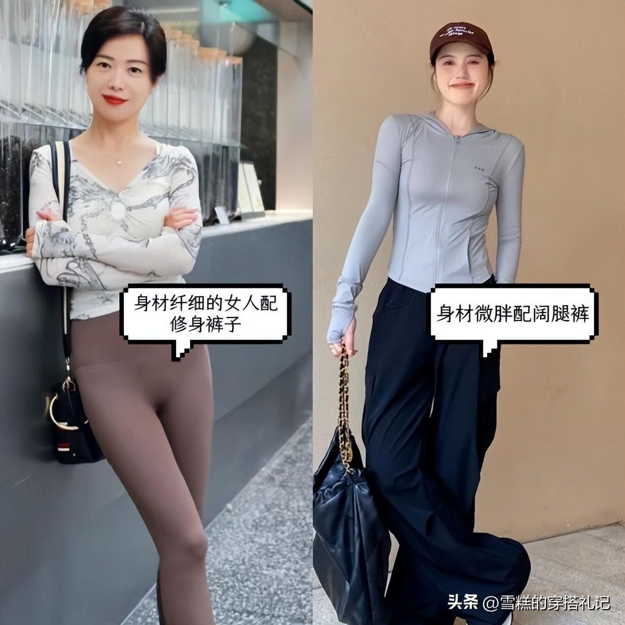 上半身比較纖細的女性可以多選擇修身款式的瑜伽衫,勾勒出纖細的身形,穿出高級與利落感,搭配上寬鬆的闊腿褲和山本褲,用上身修身下身寬鬆的方式優化身形,起到揚長避短的好效果。尤其是面料具有垂墜感的山本褲,會襯托的腿型更加筆直修長,特別適合腿型不完美的女人。