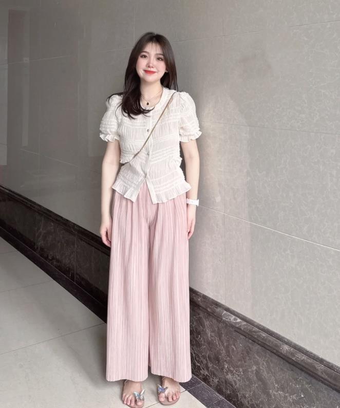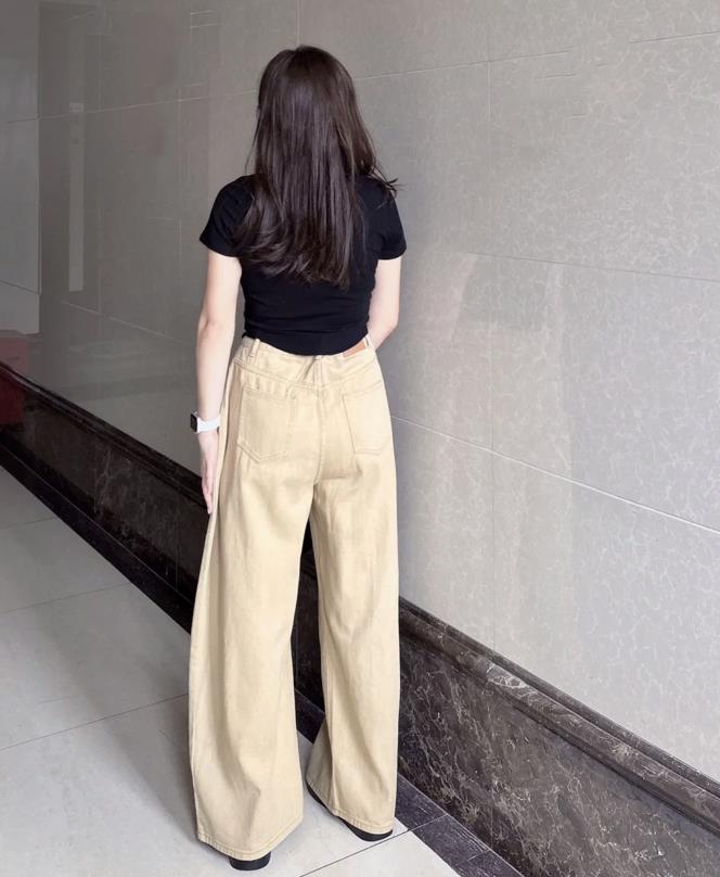 微胖的女生,真的建議選擇闊腿褲來穿,上緊下松的組合,太適合梨形身材了,上短下長的搭配,在視覺上也很好拉長了腿部線條,顯高顯瘦不說,還時髦。