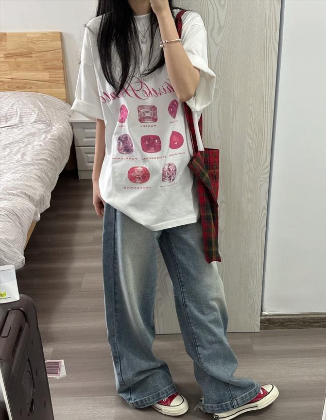 誰懂啊,白色t就是專屬於夏天的,特別喜歡這種版型大大的款式,感覺很容易展現出鬆弛感和隨性。當然,對於各種身材來說,也是沒有違和感的,選擇一條牛仔闊腿褲來配,再加上一雙亮色帆布鞋,絕了。
