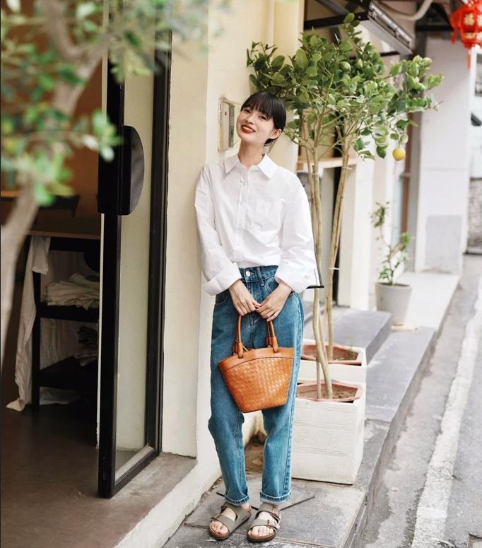 夏天的穿搭,就是要簡單隨性一些,基礎款白襯衫和牛仔褲的搭配,應該是每一位女孩子衣櫥裏的常見款了,搭配勃肯涼鞋,這麼一雙涼拖鞋,穿起來舒適度和透氣性都是極佳的。整體的造型幹練利落又帶點鬆弛感,不管是上班通勤,還是逛街都合適。