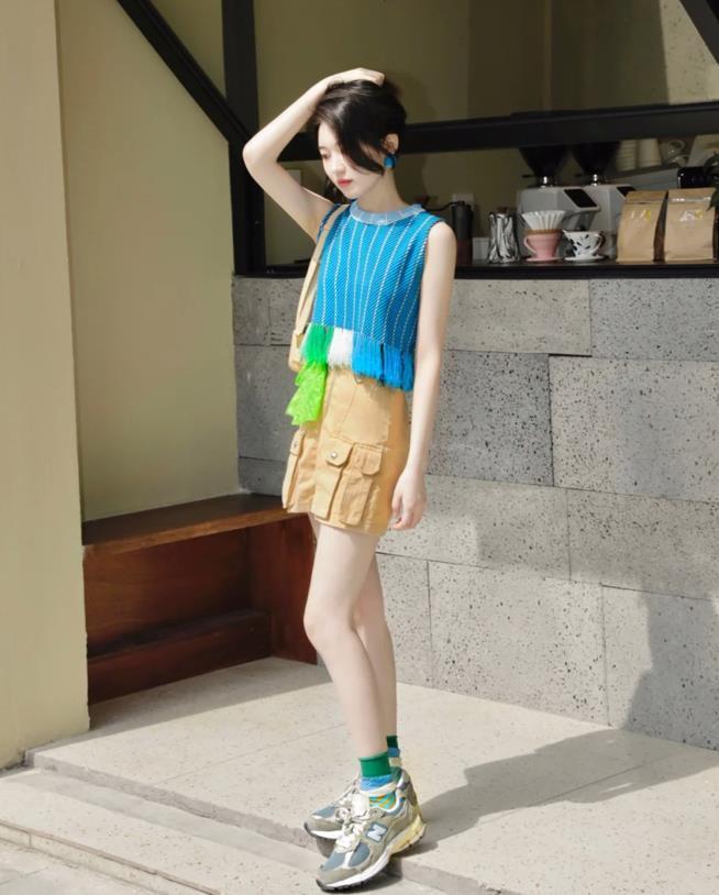 夏日的經典鞋款又怎能少了運動鞋呢?清涼的夏天大概率是少不了藍綠色吧?在炎炎的夏季裏,有着很好的視覺降溫效果。編織的背心+工裝短裙,搭配淺綠色運動鞋,瞬間又多了幾分街頭復古範。
