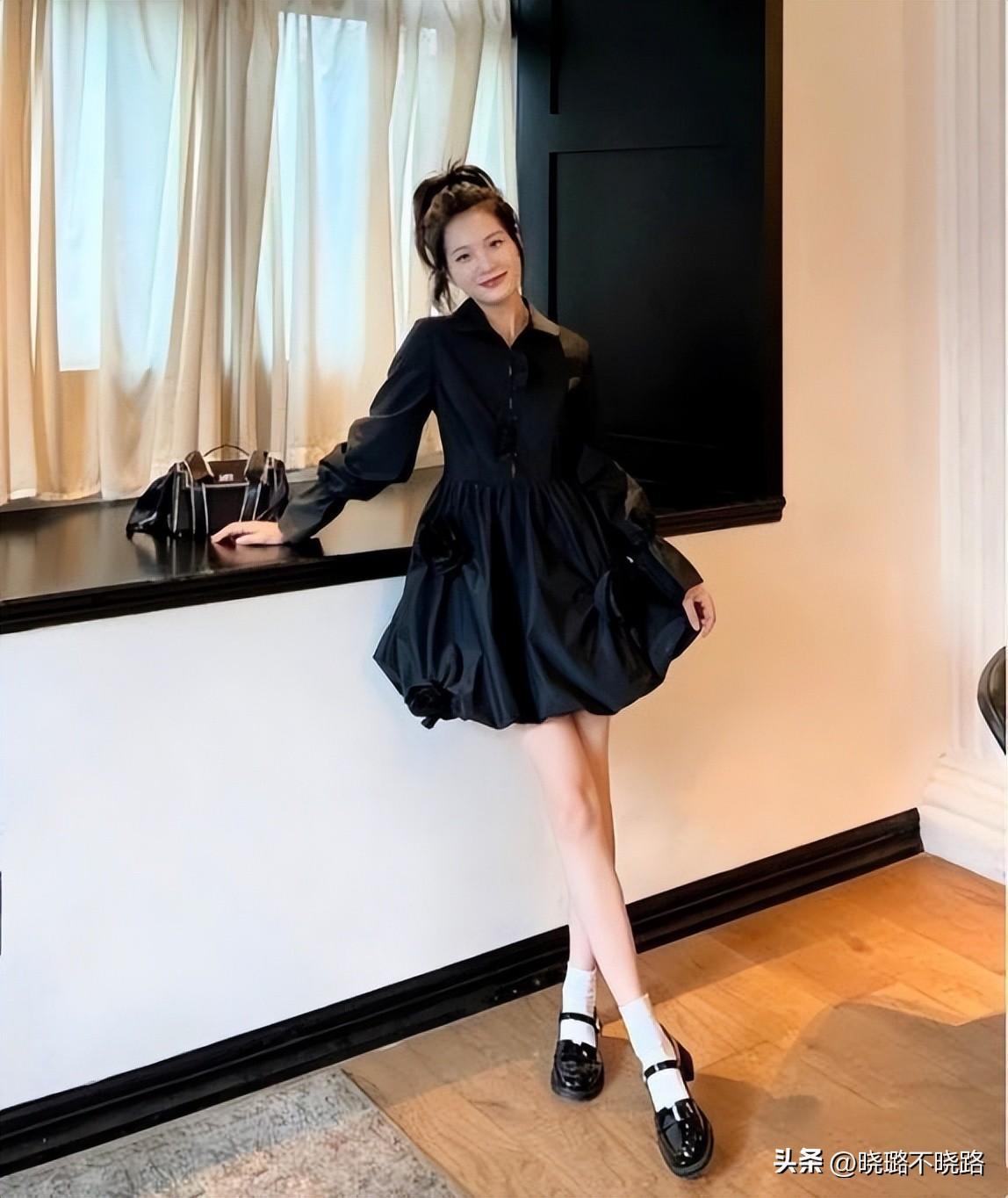 一身黑色的裙裝設計,具有極強的高貴感。與黑色的瑪麗珍鞋互相呼應,給人一種復古又高級的懷舊感。不過在選擇款式時,可以結合褶皺、網紗或者蕾絲等設計,這樣就會避免沉悶和死板的感覺。搭配一雙白色襪子,可以增加層次感,也看着更加時尚。
