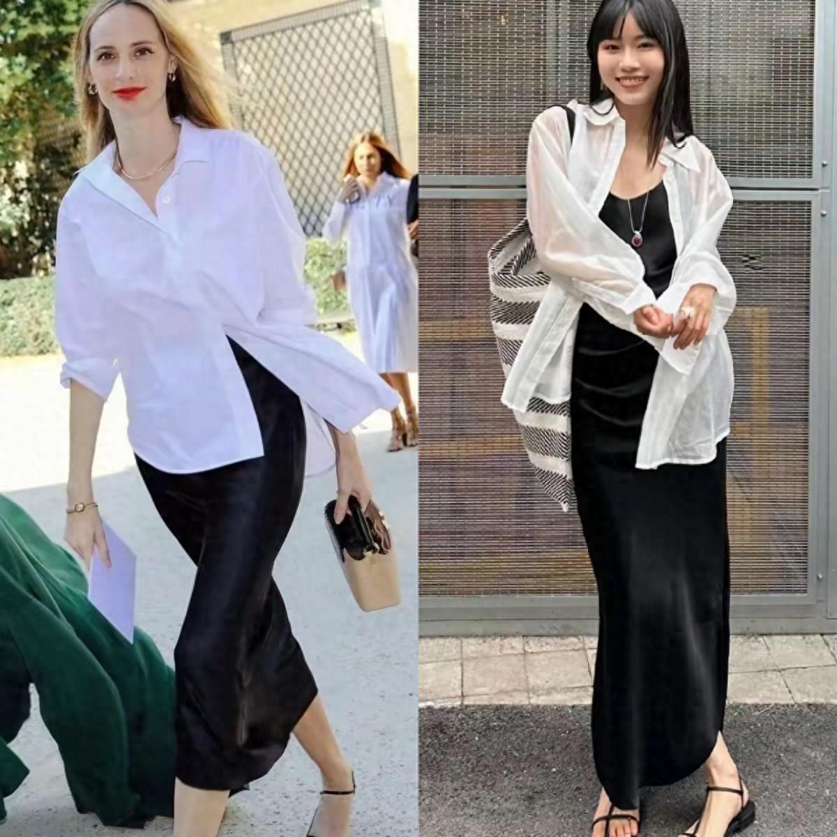 自帶降溫效果的白色半身裙,也會讓我們的夏日穿搭更多積分涼爽。簡簡單單的白色半身裙,可以配襯衫、或者T恤來穿着。