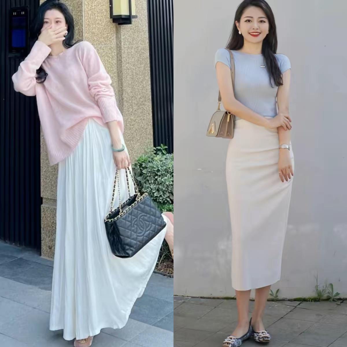 選擇剪裁流暢的半身裙,不僅能抬高腰線、修飾腹部線條、還可以掩蓋胯部和臀部的厚重,表現出視覺上的輕盈感,讓穿衣搭配更顯時尚。