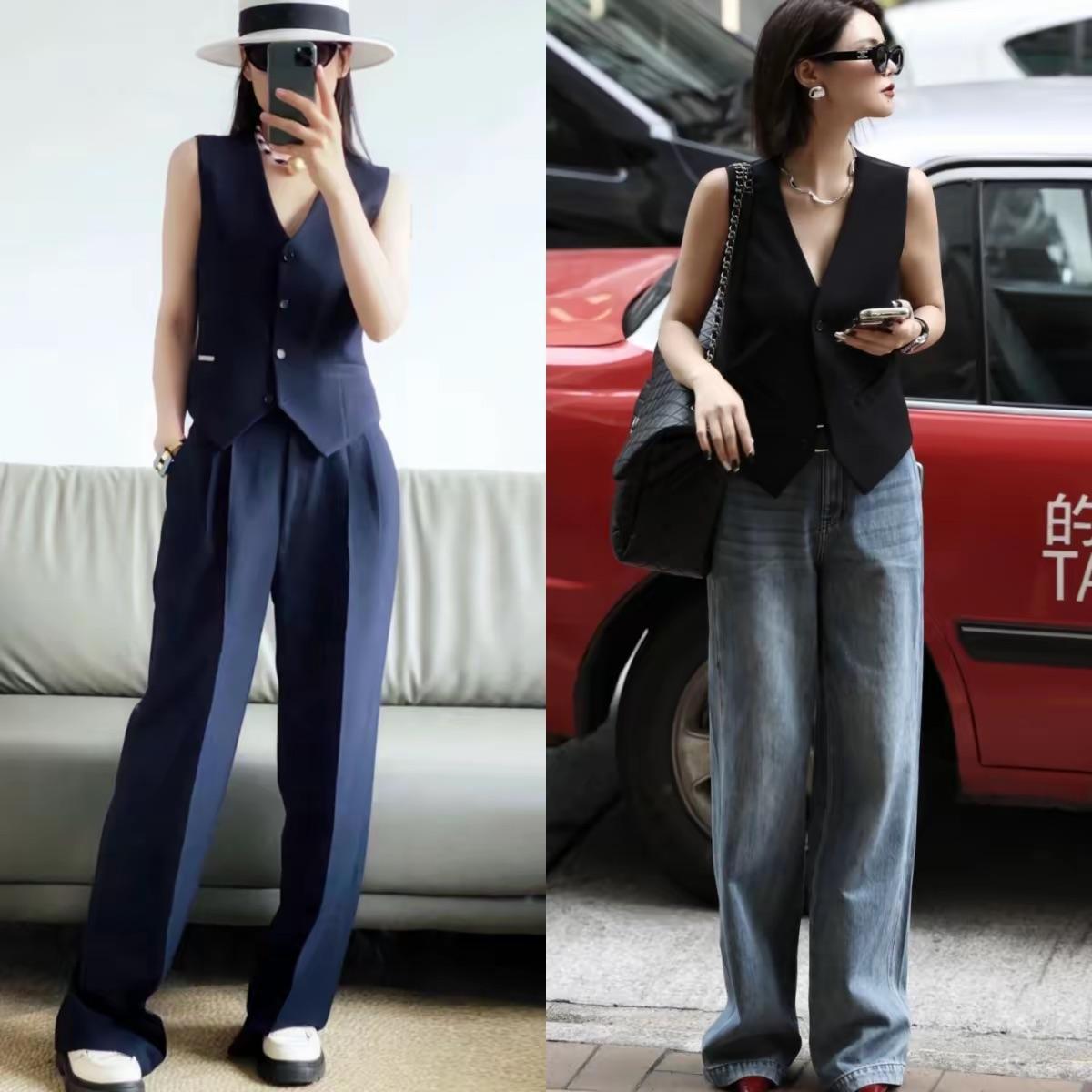 喜歡老錢風的穿搭,可以嘗試搭配比較修身的西裝馬甲。用西裝馬甲配同款的西裝褲,整體視覺延伸性更強。西裝馬甲短款的版型,精緻合身很顯貴氣。