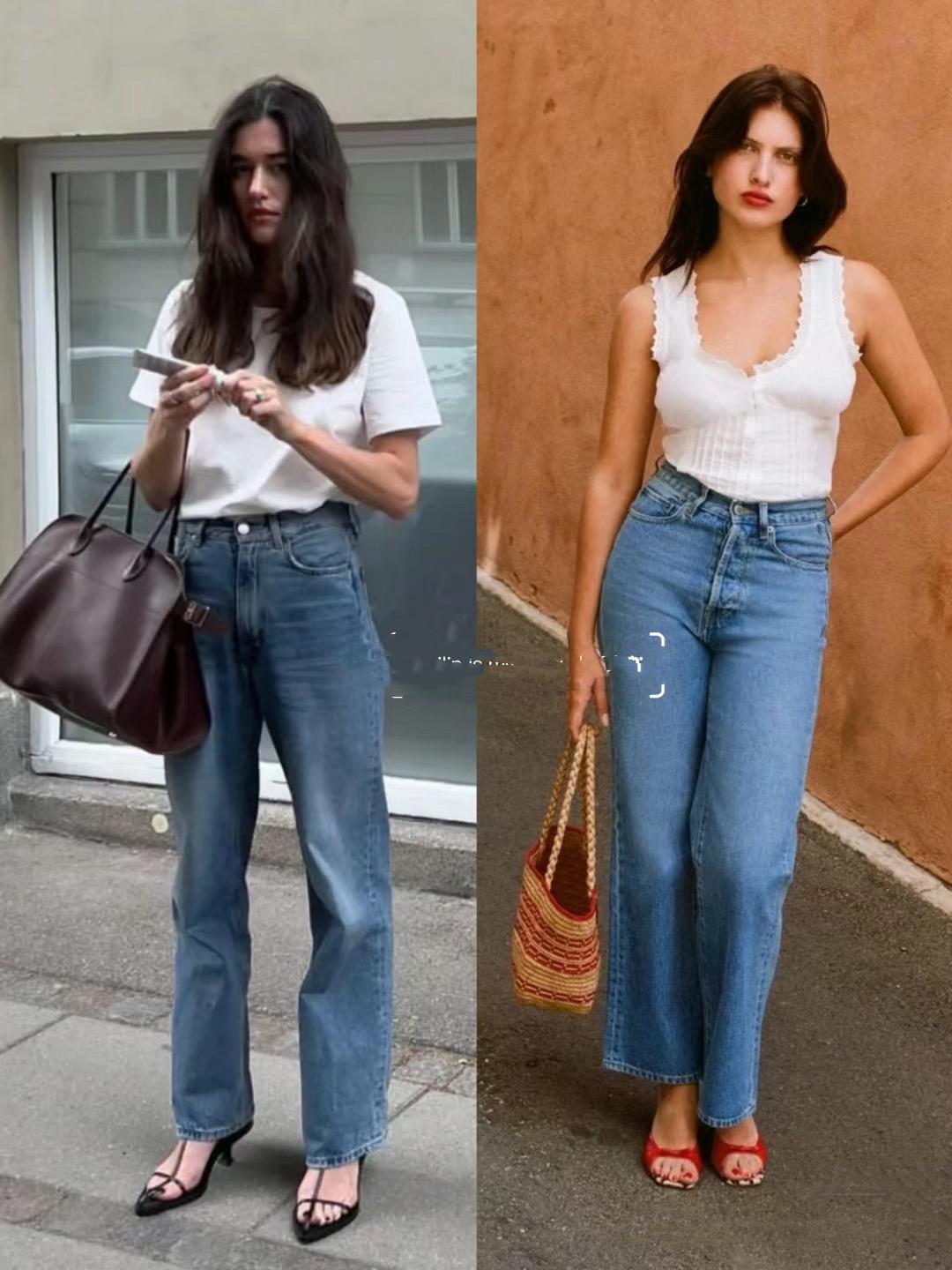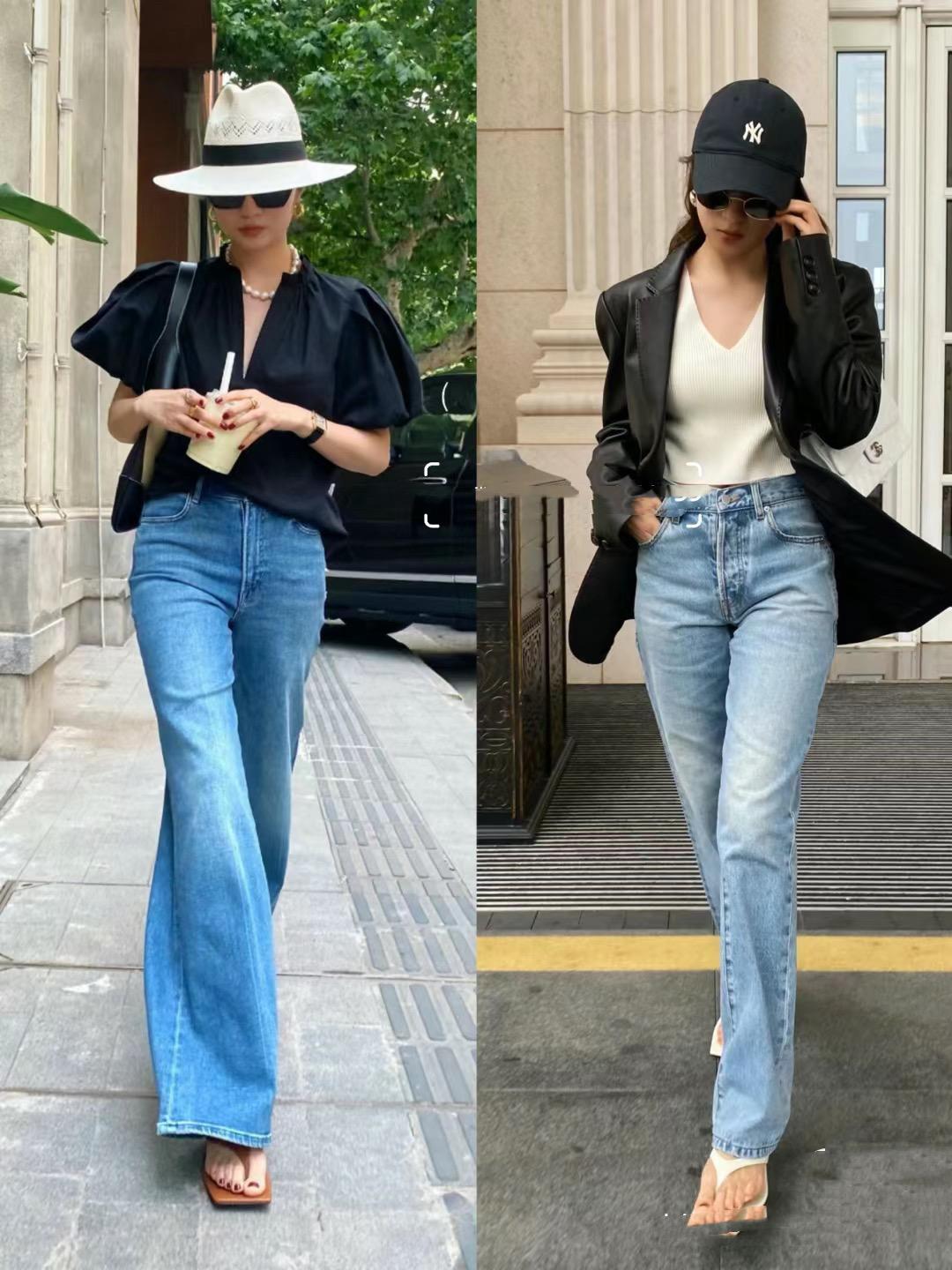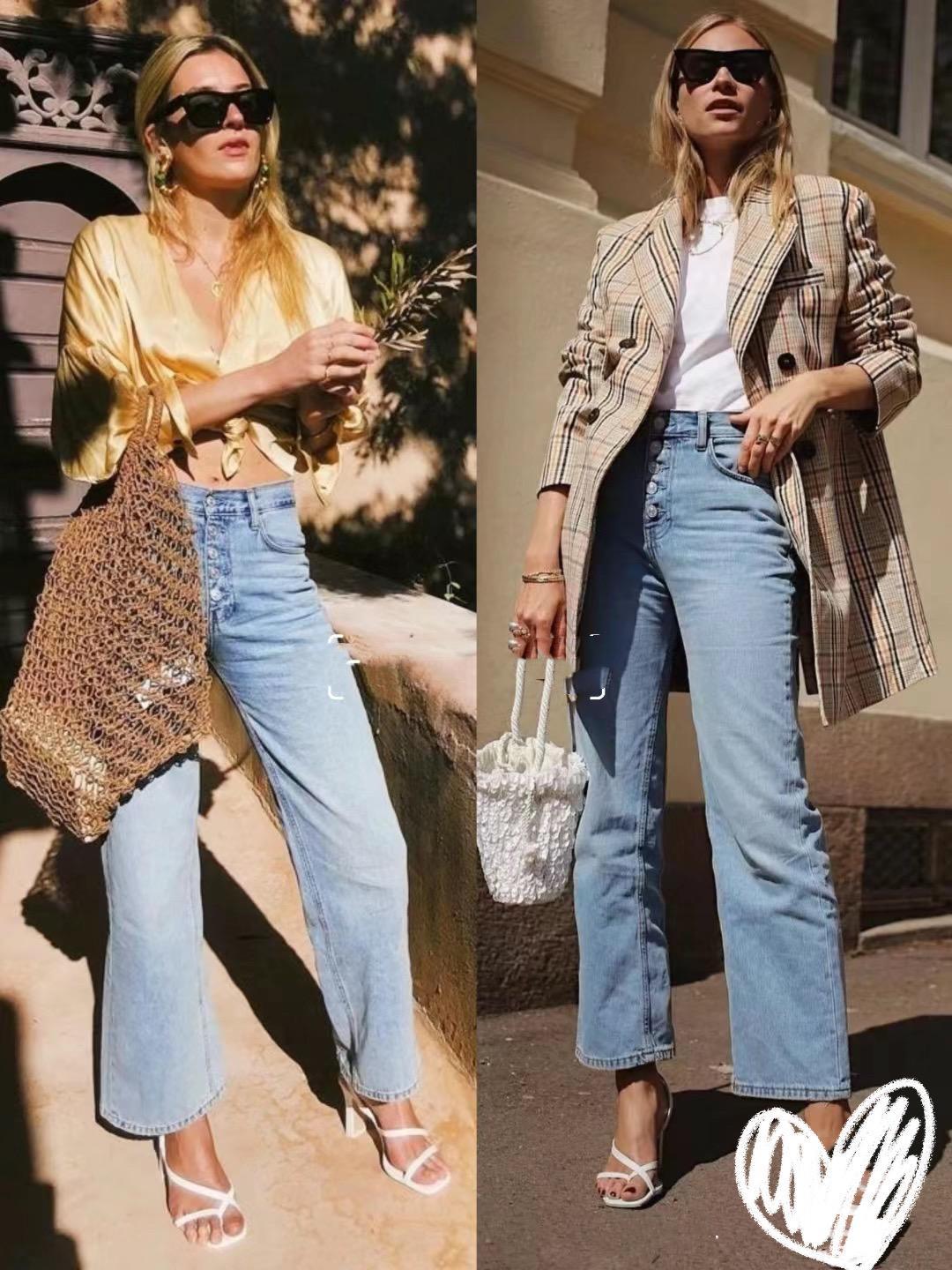 這個夏天,如果你也想擁有大長腿的既視感。就選擇牛仔褲+涼鞋的搭配吧。尤其是高腰牛仔褲+高跟涼鞋的組合,更自然的修飾腿型、優化身材比例。