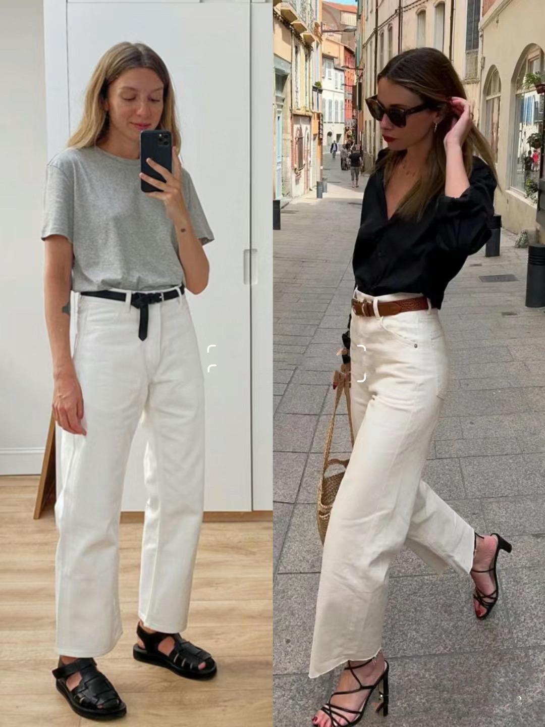 擔心常規的牛仔褲不夠清爽,就選擇更加醒目且自帶降溫效果的白色牛仔褲吧。以白色牛仔褲來凹造型,塑造出清涼解暑的夏日氛圍,搭配羅馬涼鞋或者高跟涼鞋都很洋氣。