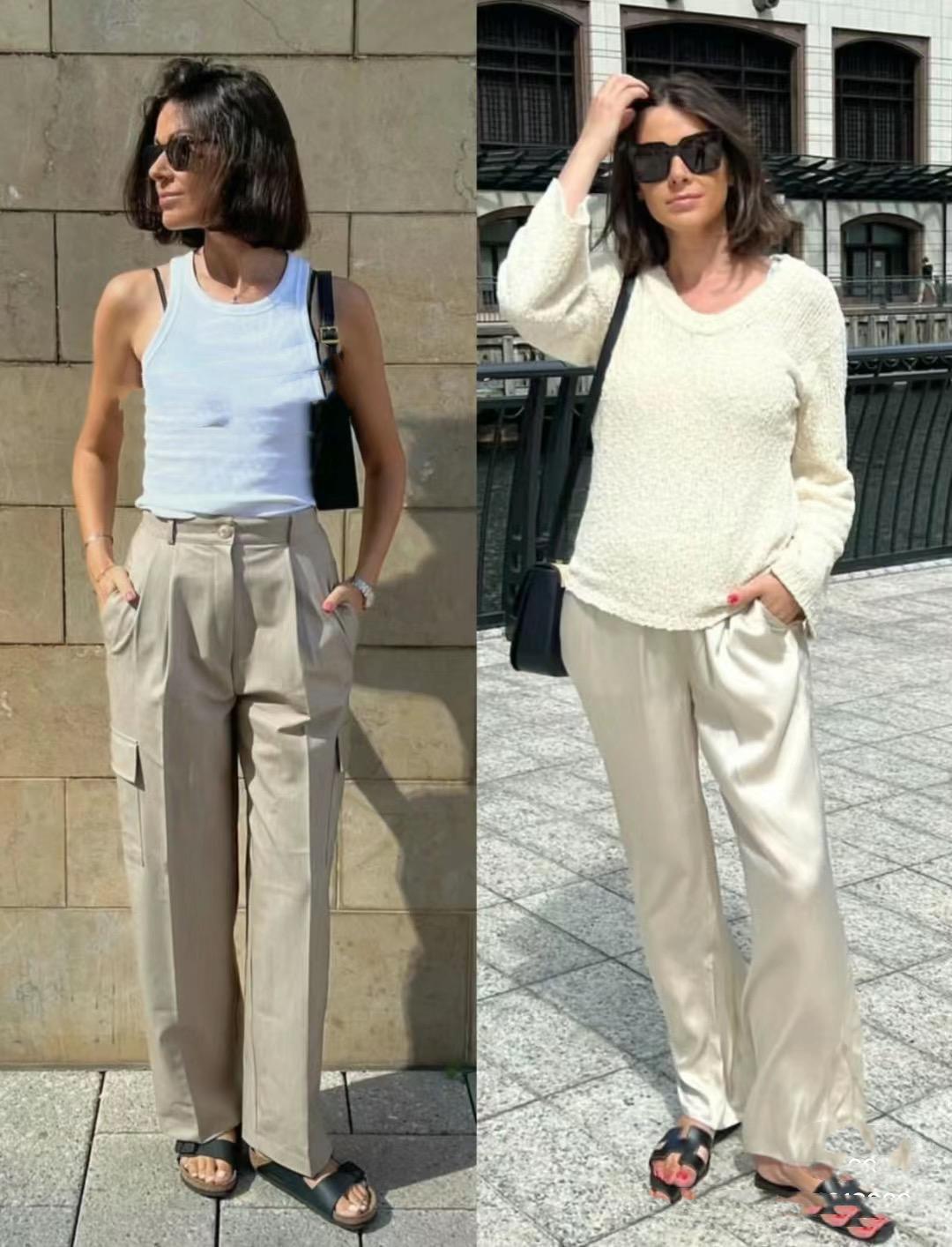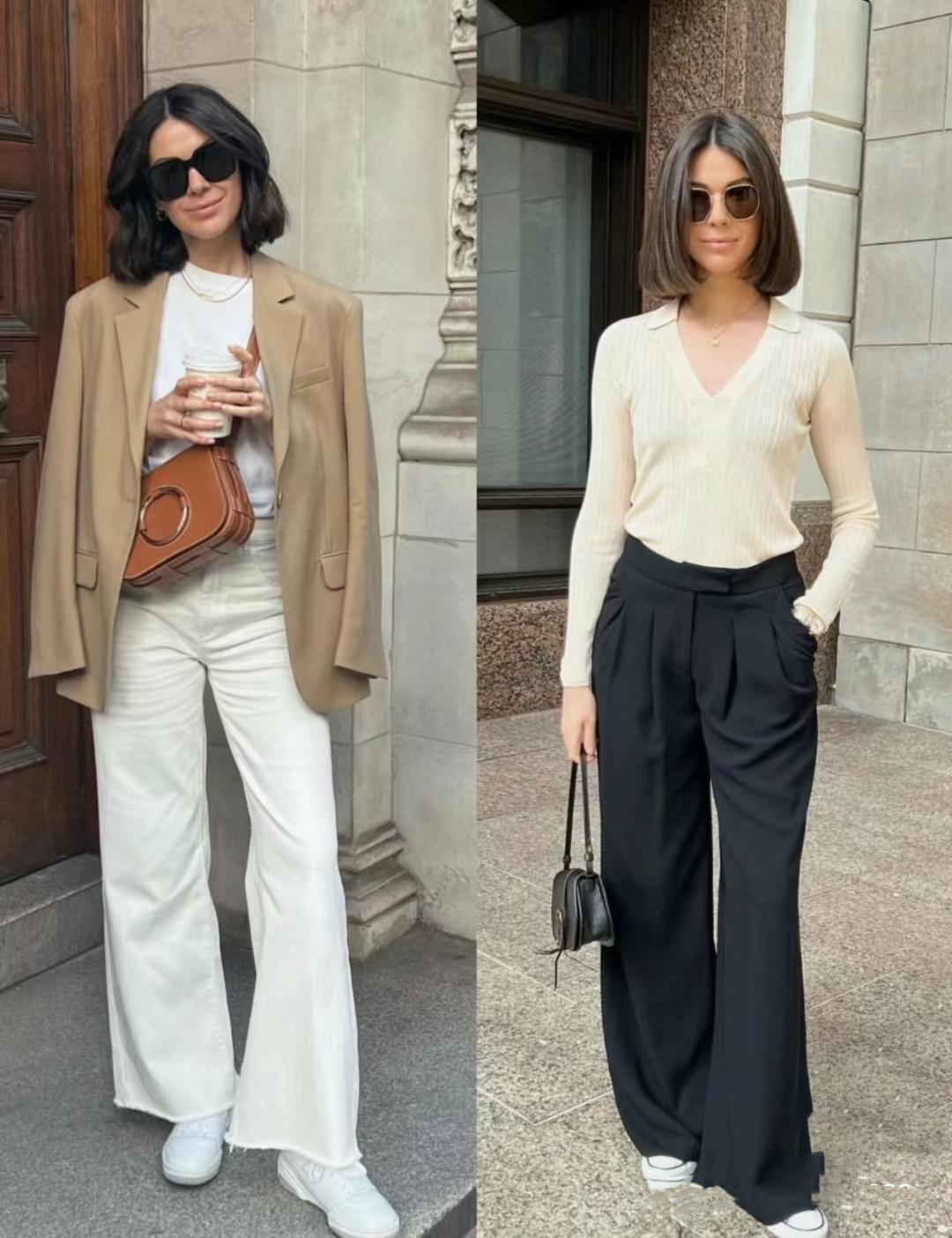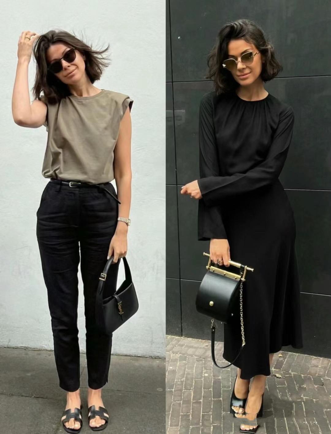 可以是修身的針織衫、也可以是寬鬆的T恤。可以是剪裁流暢的連衣裙、也可以是版型寬鬆的闊腿褲。這種不緊繃、不緊勒,舒適自信的單品,就更適合鬆弛感的呈現。