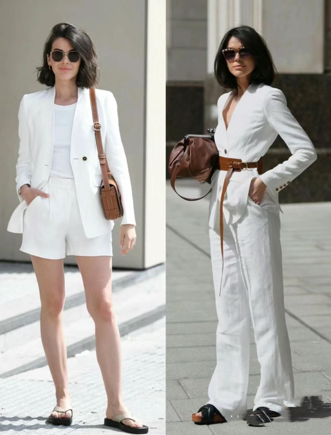 鬆弛感穿搭,不僅可以接地氣、也可以更高級。比如白色西服外套,在夏天裏的穿着率就非常高。不管是配短褲、還是長褲,都更體面。