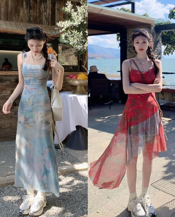 吊帶連衣裙的款式也非常多,你可以根據自己的喜好和場合,或者是風格進行選擇,純色的吊帶連衣裙,可以助你打造出高貴的氣質,碎花、印花款式的吊帶連衣裙,則讓你在夏日裏更顯浪漫與活力。