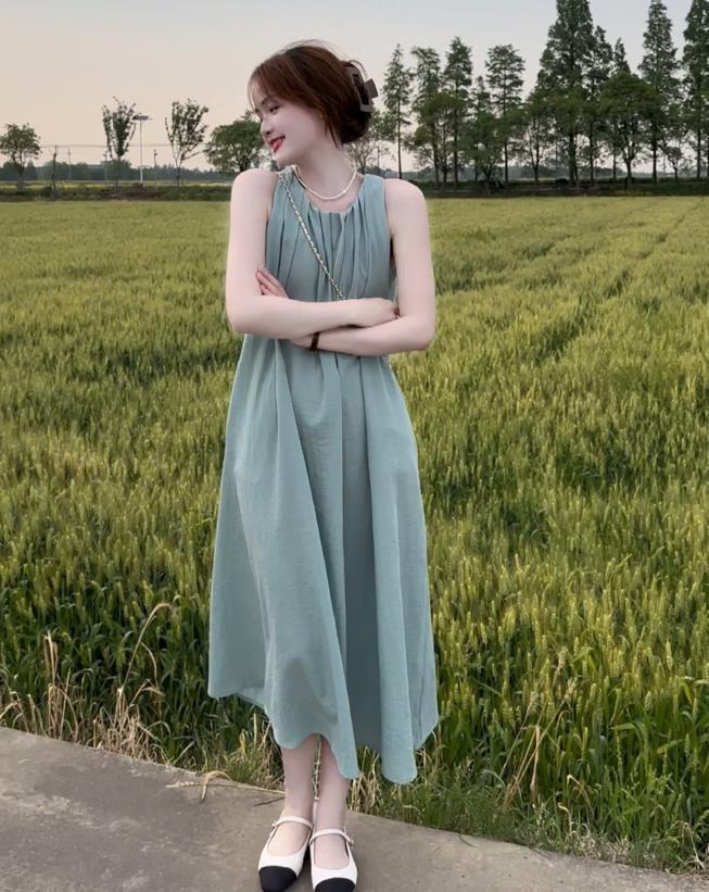 這個夏天,穿上無袖連衣裙,搭配上只需要考慮下鞋子和配飾即可,簡單的小白鞋,休閒舒適,也可以搭配一雙涼鞋,涼快又不失精緻感。