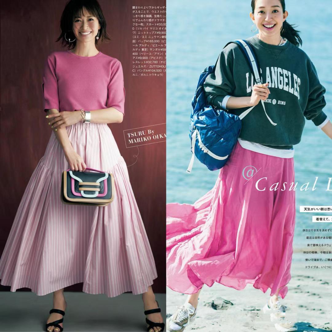 不管是粉色條紋半身裙、還是枚粉色雪紡半身裙,都更加適合夏天。這樣大量感度半身裙,配一雙尖頭的酒杯跟鞋子,不僅顯高、也顯得腿型纖細,整個人都更年輕了些。