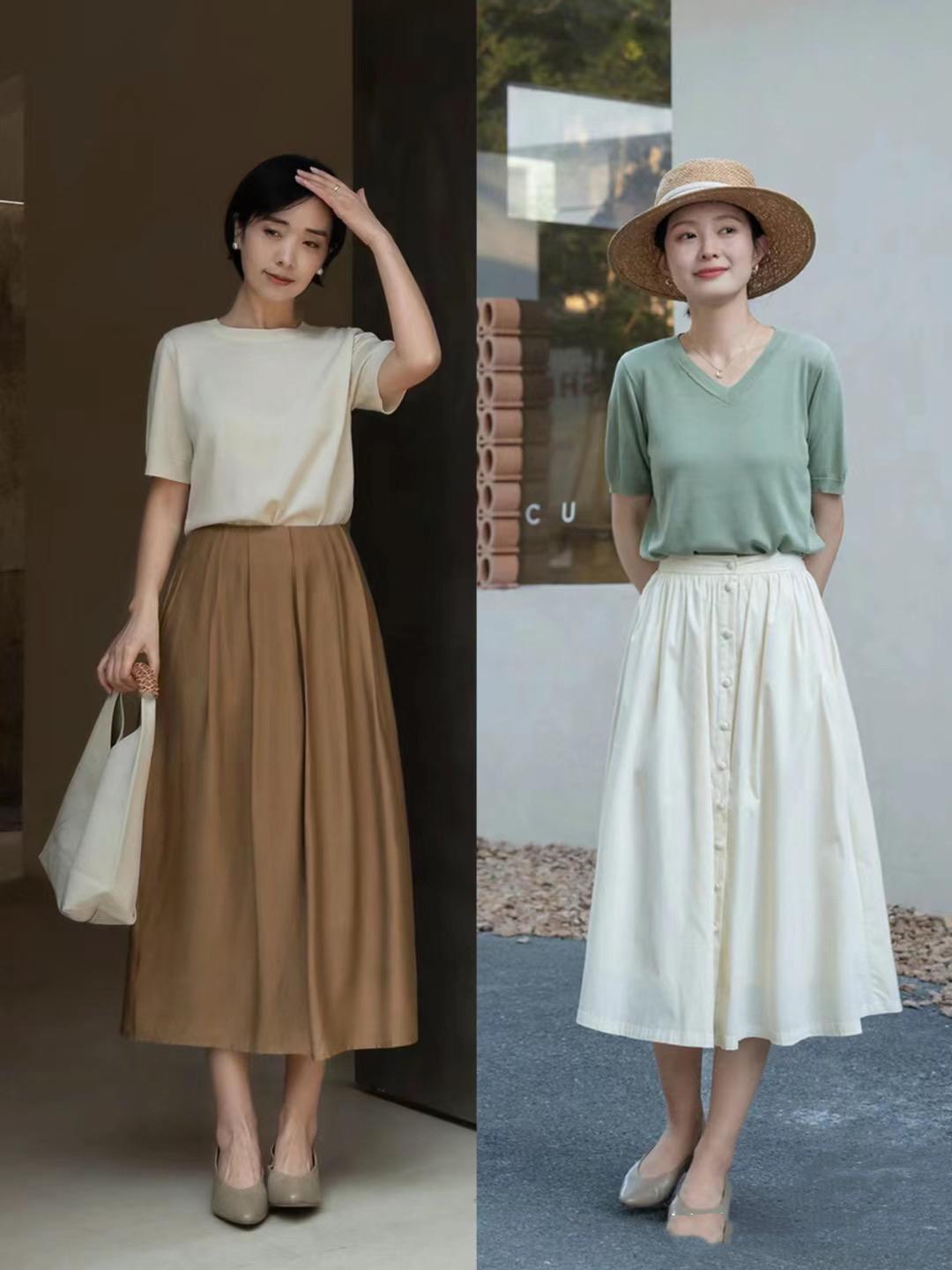 扇形裙剛好露出小腿和腳踝位置,優雅又顯瘦。在中年女人的世界裏,什麼梨形身材、腰粗臀厚、大腿粗壯、下半身壯碩,都可以完美掩蓋。