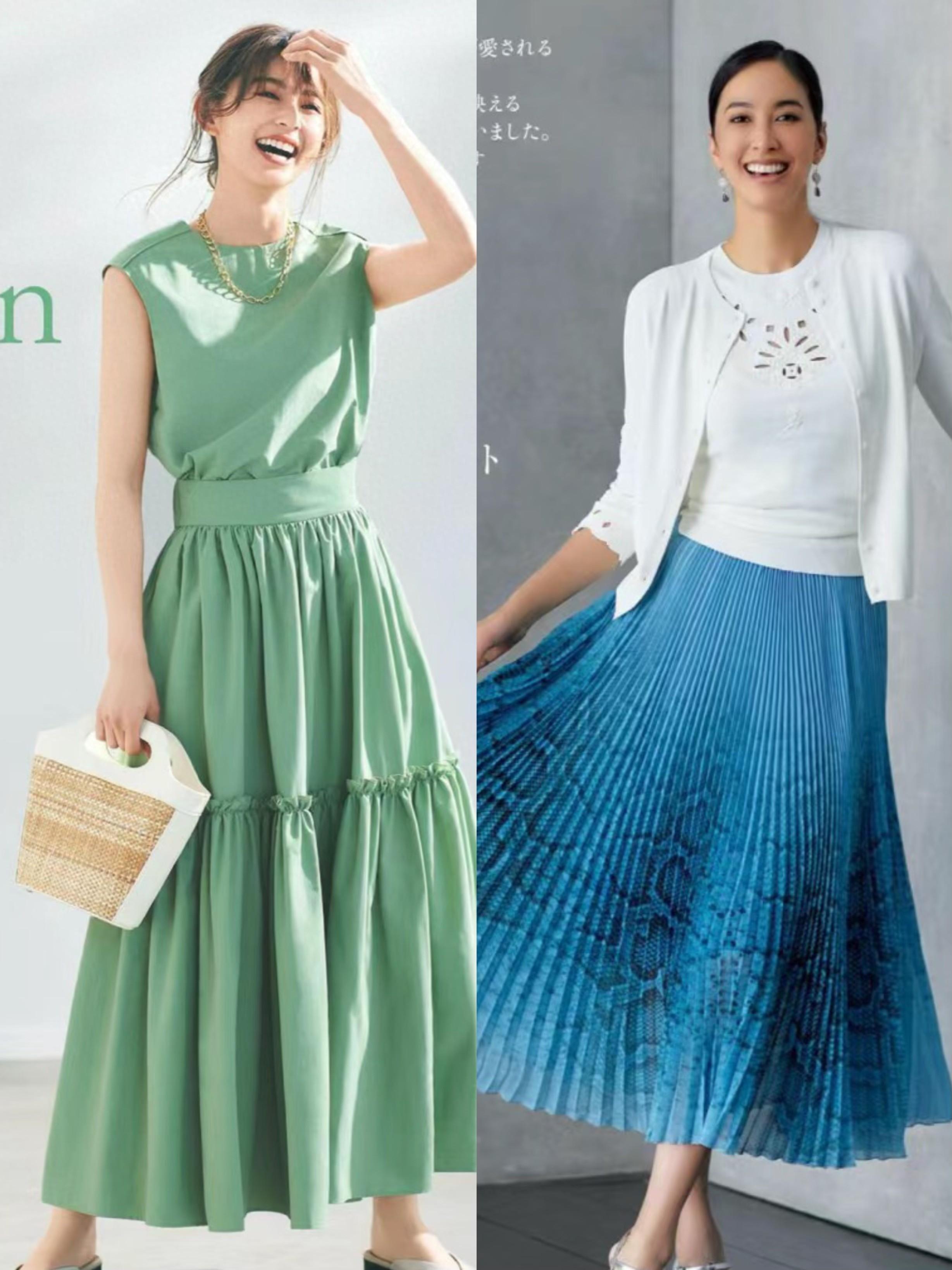 想要更加減齡、俏皮一點的穿衣方式,我們可以選擇色彩明亮一點的半身裙。比如色彩明亮的印花半身裙,或者A字形的半身裙。