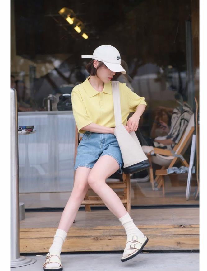 今年polo衫又再一次在時尚圈裏火起來了,很顯白的短袖polo衫,這是一個很顯白的黃色,軟糯透氣的面料,夏季穿起來也很舒服。搭配淺色牛仔短褲,休閒又不失俏皮感,不管是日常通勤,還是出門遊玩都合適。