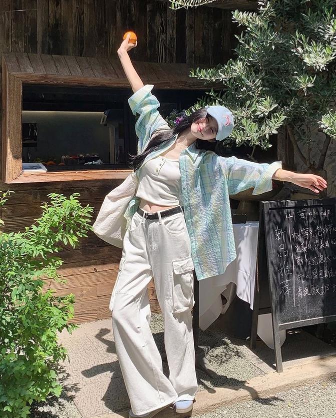 這一套看起來就很絕啊,很喜歡這個綠色格子襯衫,淺淺淡淡的配色,很低調又能把膚色襯托得很白皙。薄荷綠格子襯衫,夏天穿這種亮色就是能讓人的心情變得好起來。