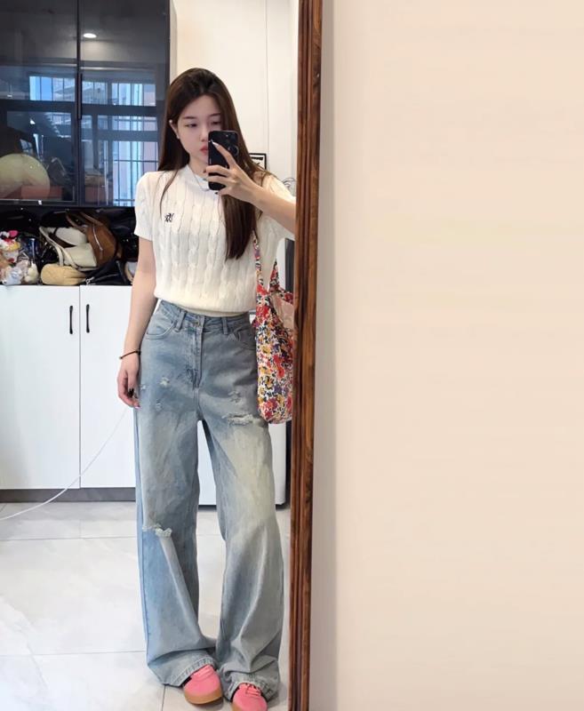 誰說針織衫這種單品只適合在春秋季節穿呢?就算是在夏天,也是可以穿的,薄款的針織短袖,透氣性很不錯,柔軟舒適的面料,穿起來很舒服。乾淨的白色,搭配水洗牛仔藍長褲,有些顯隨性又不失休閒。