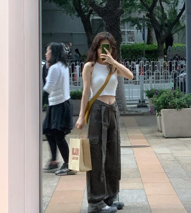 夏天這樣穿真的好帥氣啊,白色背心,超適合炎熱季節的,清爽又涼快,短款的長度,上身後能很好拉長下身的比例,選擇一條工裝褲相配,真的又帥又酷,上短下長的搭配,最適合小個子女生了。