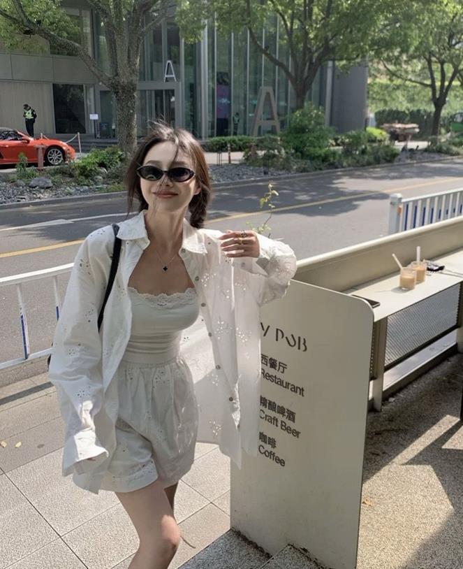 在夏天,誰不喜歡這種好看又慵懶的穿搭呢?整個配色是乾淨的白色,寬鬆的版型襯托下,慵懶範十足。白色寬鬆鉤花鏤空襯衫,下身搭配一條鬆緊腰休閒短褲,韓裏韓氣的一套,微胖、梨形身材的姐妹們也可以輕鬆駕馭。