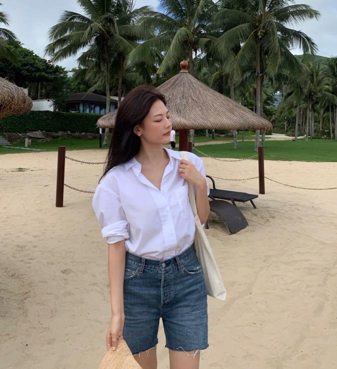 去海邊遊玩,不妨試試白襯衫配短褲吧,藍天白雲和白襯衫實在是太般配了,不管是單穿還是當作防曬衫都是很不錯的,簡單又能穿出慵懶的味道。與牛仔短褲的搭配,又多了一絲青春活力氣息。