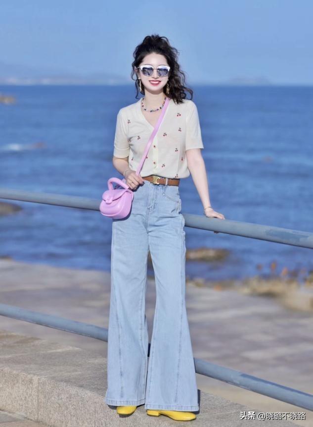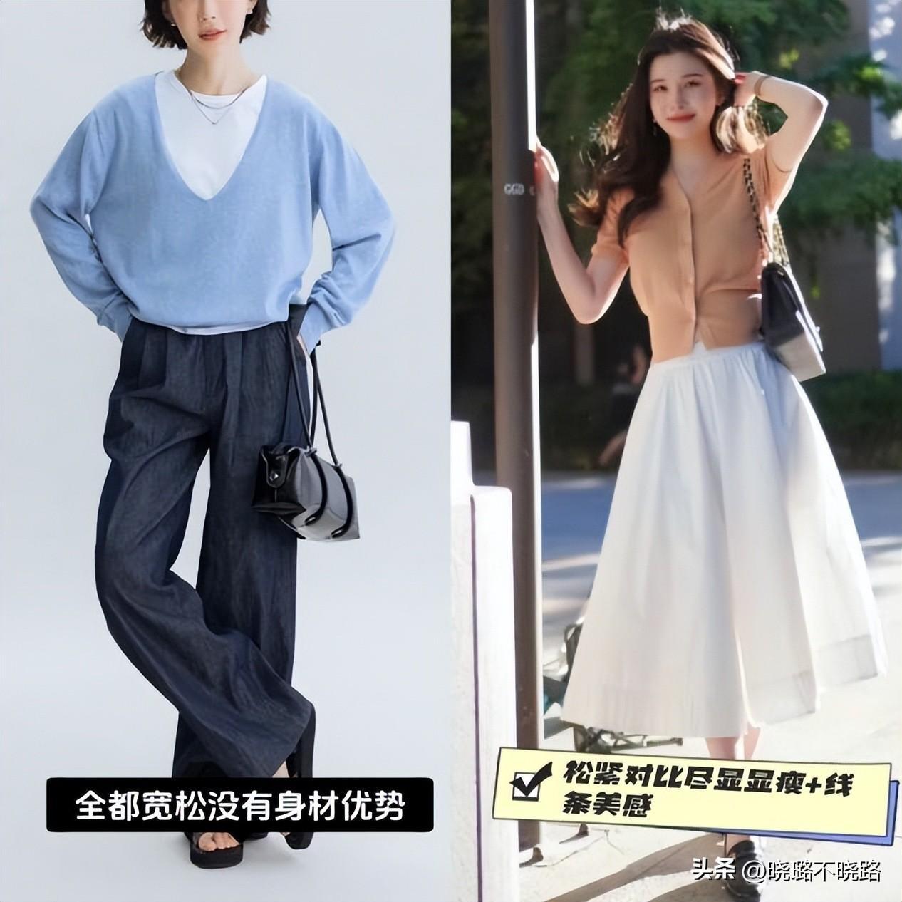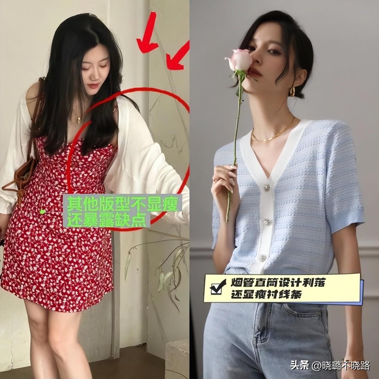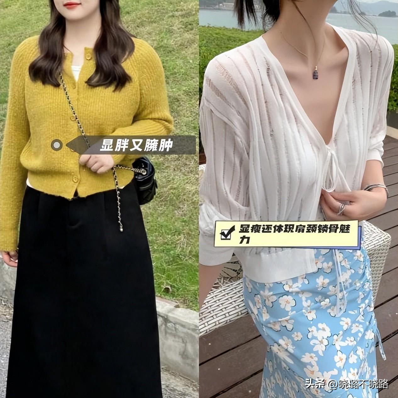 那麼對於各位梨形身材的女性來說,就非常推薦大家上半身所選擇的奶奶短衫可以略微的緊身或者是修身一些營造一個比較能夠勾勒上半身線條走向的狀態,下半身就可以搭配非常基礎的闊腿褲,又或者是像百褶裙以及a字裙,這樣寬鬆的系列上緊下松的呈現形式非常的顯瘦,揚長避短的穿搭。