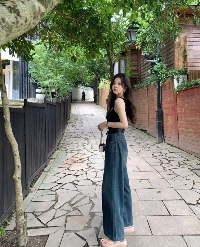 夏天,給自己準備一件吊帶吧,特別是上身比例好的姐妹,就不要吝嗇露出自己的身材了,吊帶+牛仔闊腿褲,我願稱它爲“紙片人”穿搭。褲子版型寬鬆,穿起來很舒適自在,輕鬆就打造出隨性慵懶的範。