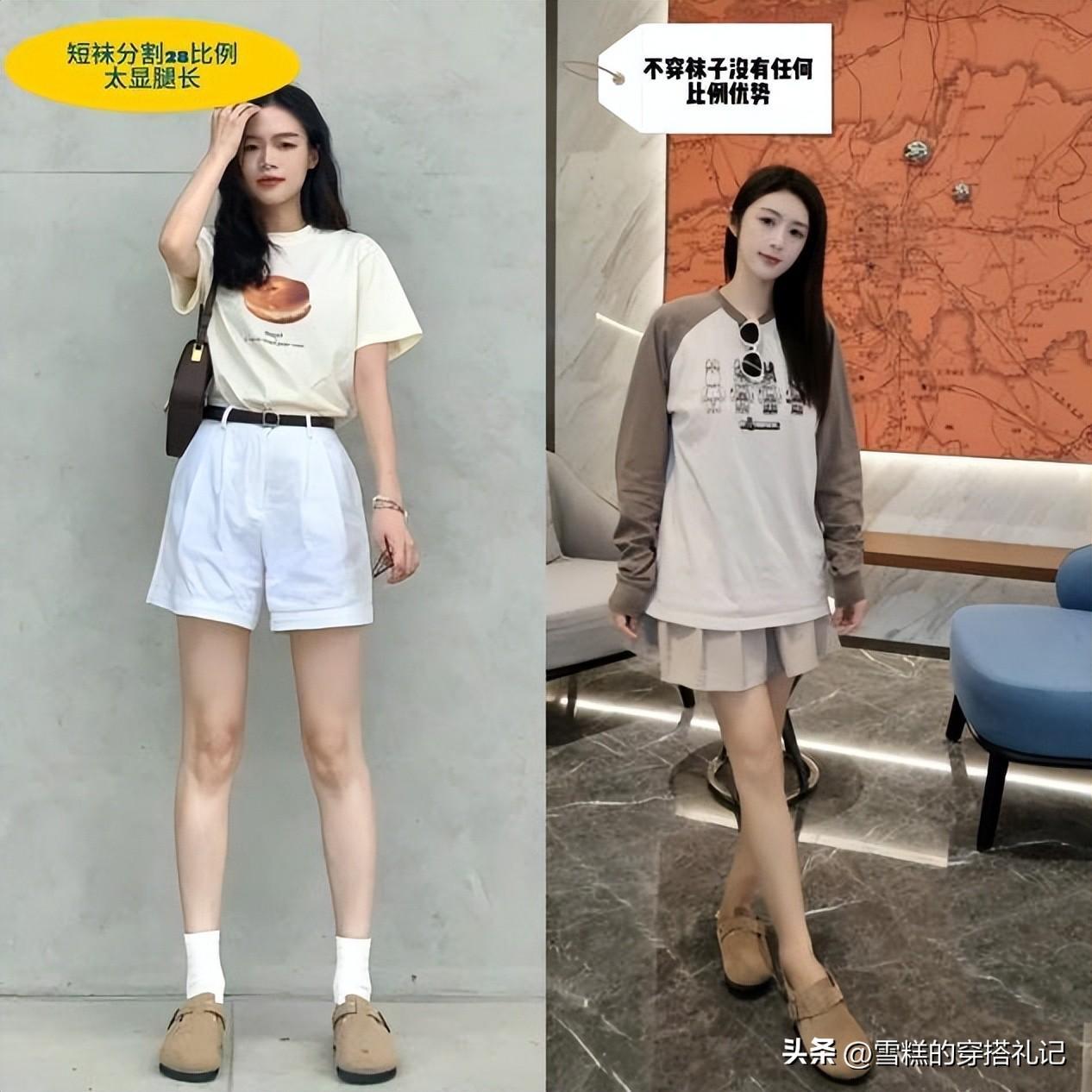 露腿型的設計還是要結合一些短襪的元素以及搭配比較偏向於厚底設計的勃肯鞋,直觀來看的話,其實短款襪子給人的感覺能夠將整個下半身的狀態分割成縱向28比例,同時略帶厚底的薄肯鞋非常直觀的增高效果,也是他非常值得優選的條件。