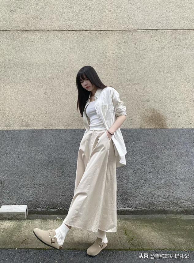 勃肯鞋與日常感休閒單品結合在一起的時候,建議大家儘量是不要選擇拖地褲或者是拖地裙,這樣的搭配,不然整個視覺感給人的感覺會非常的沉悶且單調,還是要推薦大家能夠將八分裙以及九分褲這樣露出來一小節肌膚狀態的單品,與其搭配起來呢。
