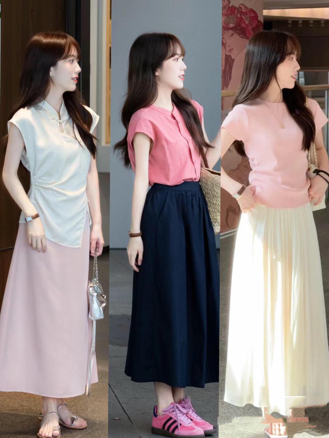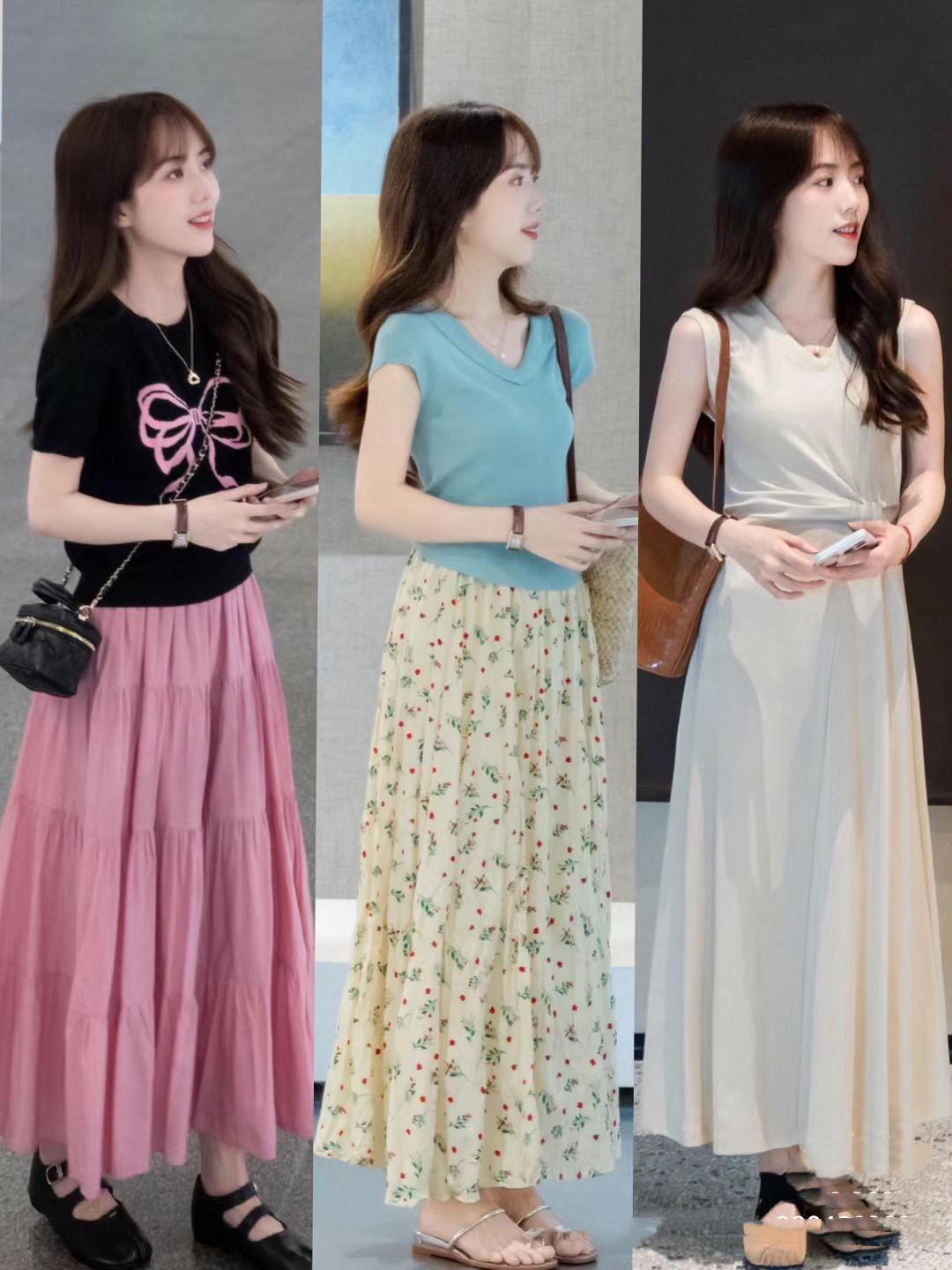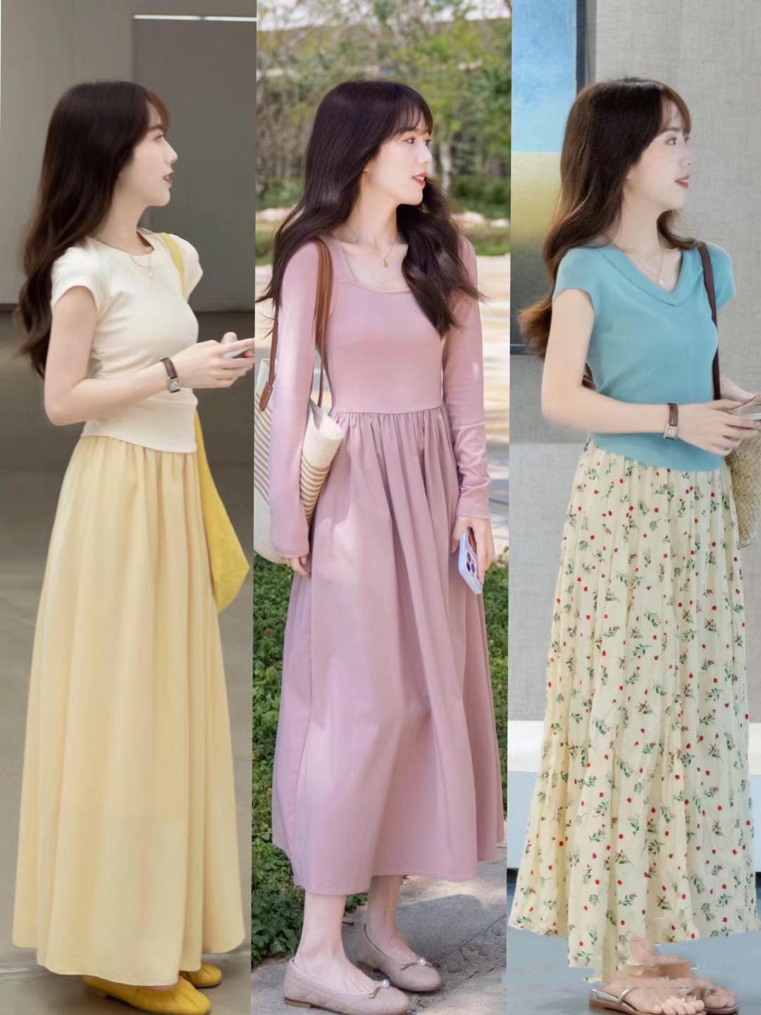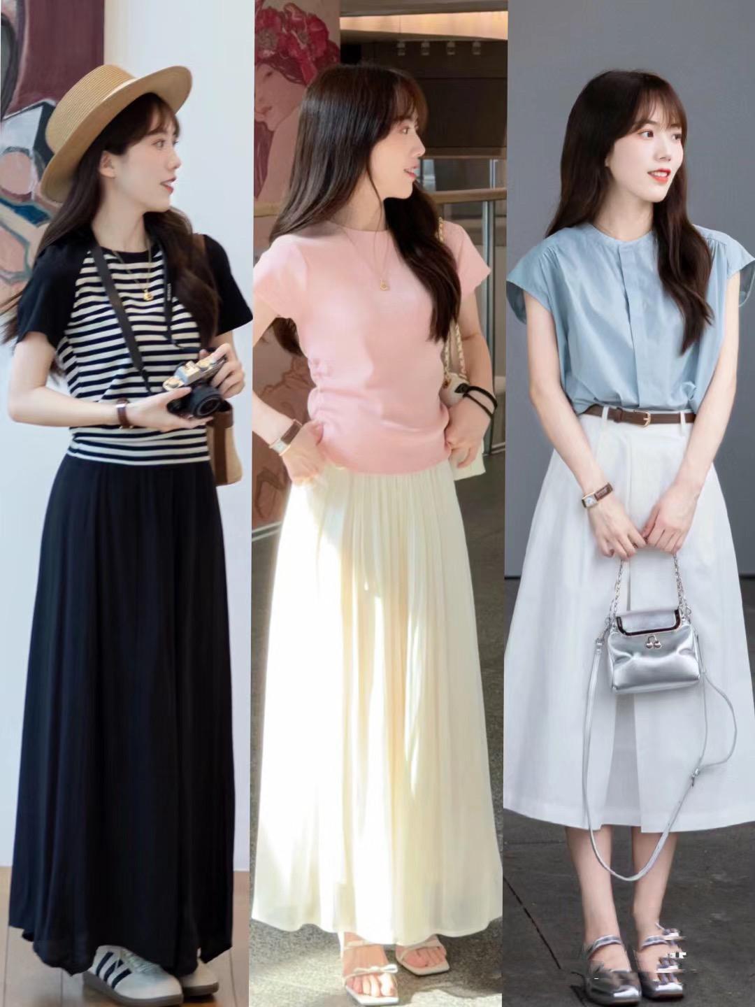 短上衣+過膝裙爲什麼那麼受歡迎,獨特的比例塑造,可以讓小個子的體型看起來更加苗條修長,是一種非常大方、洋氣的穿着方式。