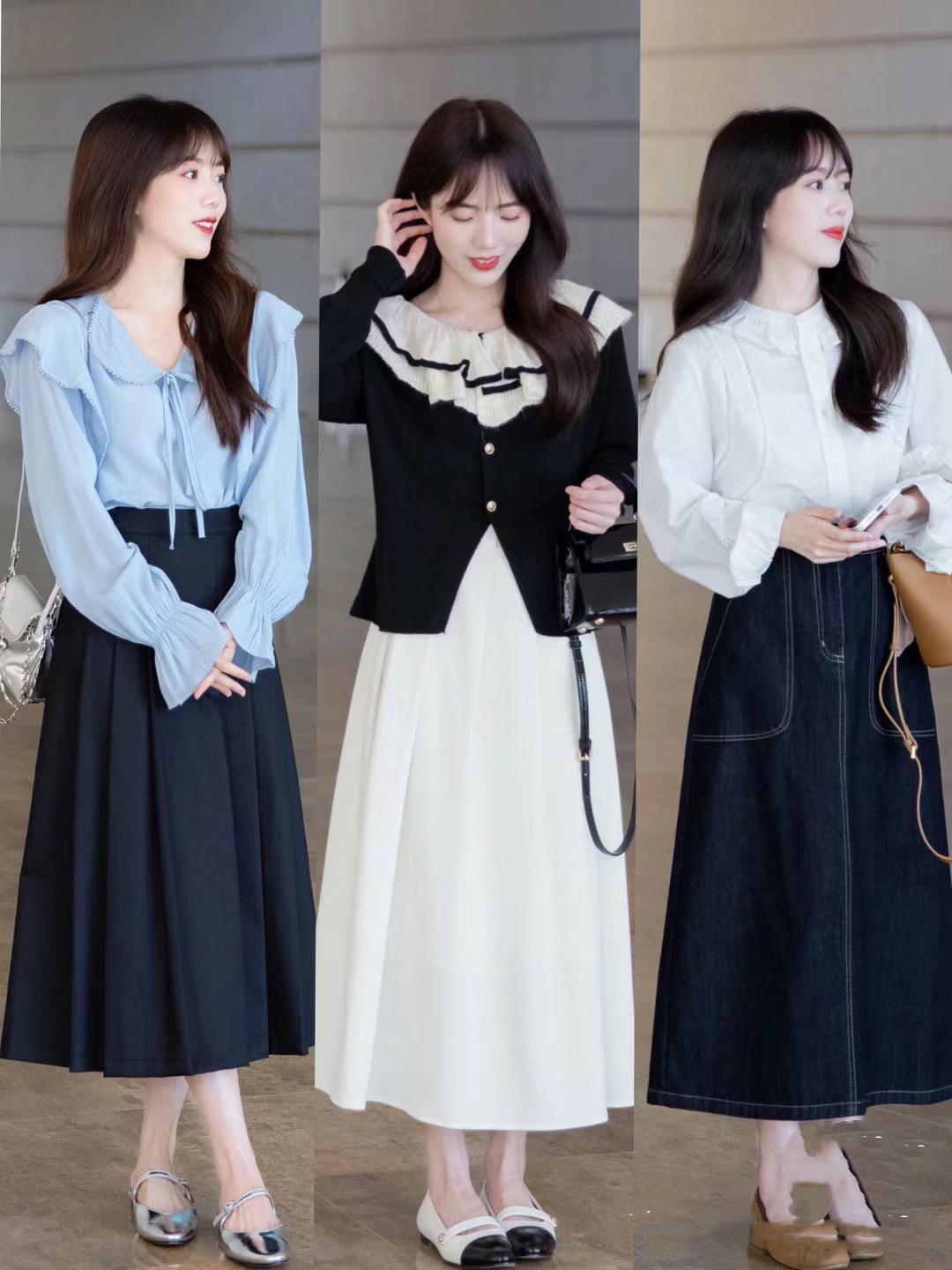 擔心自己腿粗、胯寬、體型厚重,都可以嘗試用這種高腰的A字形半身裙或者波浪形半身裙來修飾身材,簡單溫婉、氣質甜美,下半身的厚重感都可以輕鬆掩蓋。