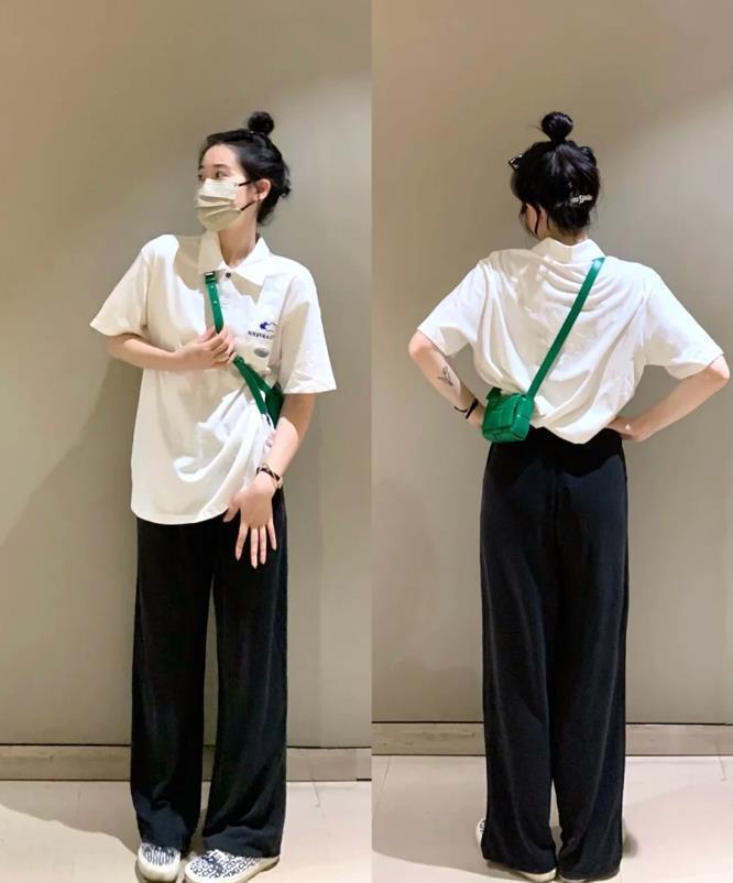 今年polo衫真的是很流行呢,所以這個夏季,不妨就爲自己入手一件短袖polo衫吧,乾淨的白色款式,帶給你一種清爽與乾淨的氣息,與黑色闊腿褲搭配,黑白配的組合,就是很時髦耐看,也不失高級感。