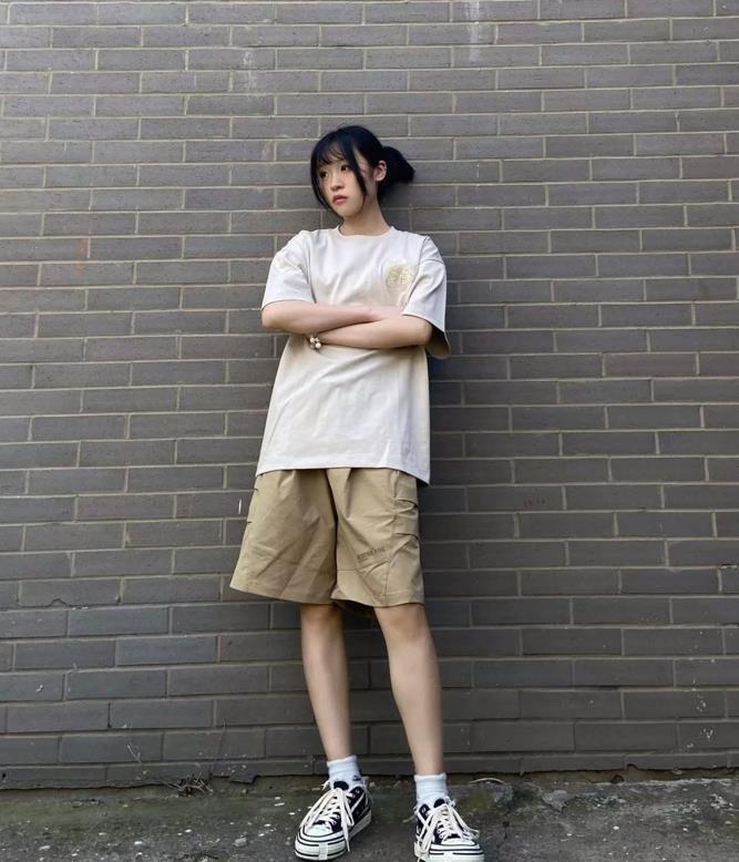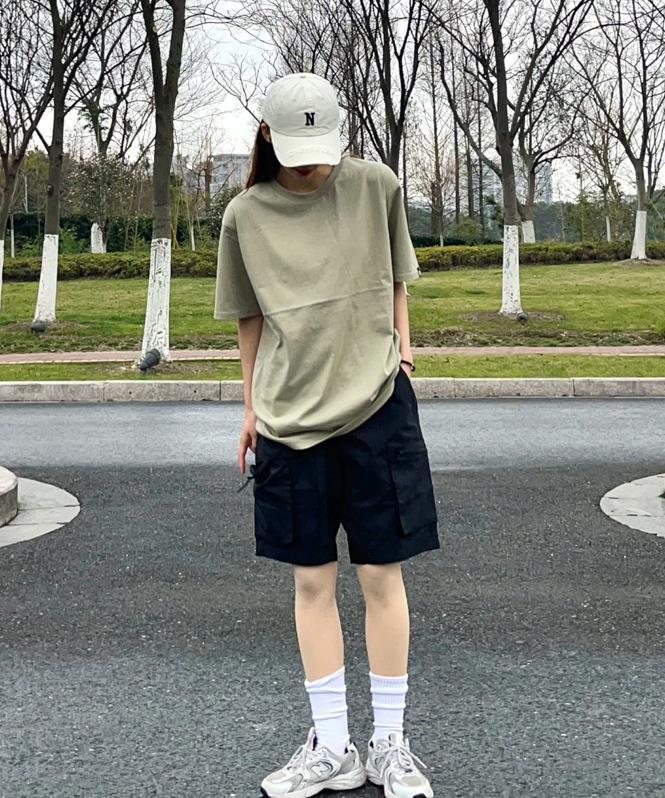 今年不是很流行中性風的穿搭麼?這個夏天,你也可以借鑑下這套,卡其色的五分短褲,抽繩設計,可以隨意根據自己的身材進行調整,版型寬鬆,穿起來也非常休閒,可以遮掩住腿粗的缺點。