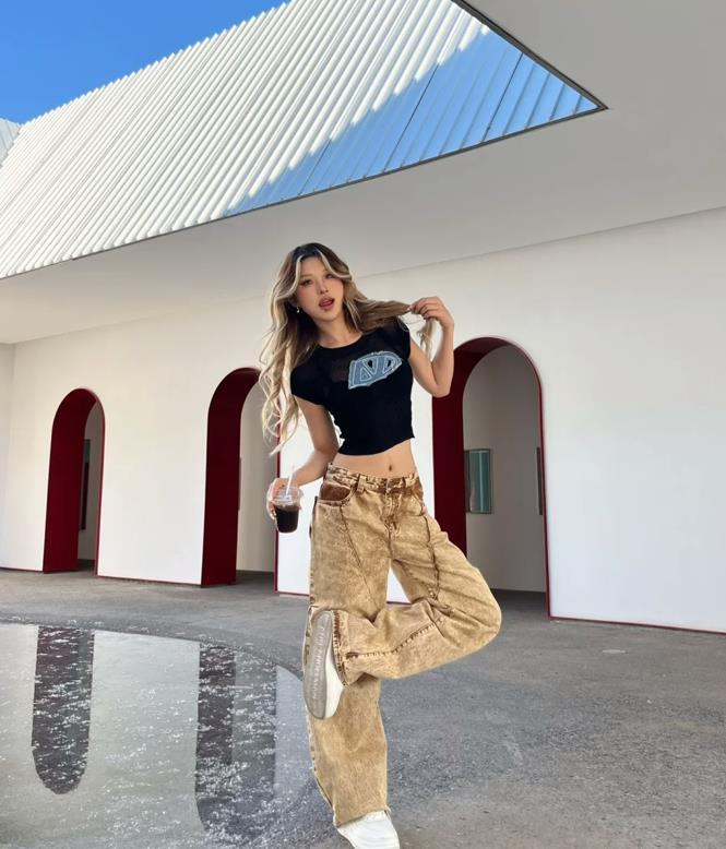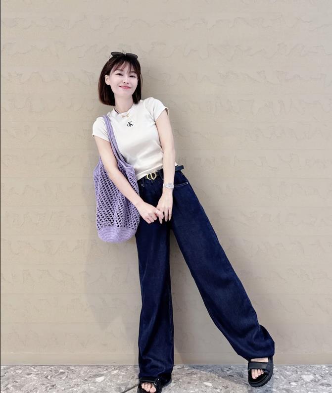 這一條牛仔闊腿褲,真的很適合夏天呢,面料質感極佳的,垂墜感也非常不錯,加上寬鬆的褲型,穿起來可顯瘦顯高了。悶熱的夏天穿起來也很涼快,搭配一件正肩短款t恤,簡簡單單又耐看。