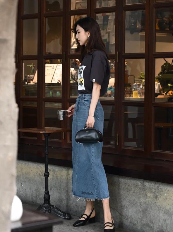 30歲也可以穿得很少女,小黃人塗鴉短袖t恤,搭配牛仔半身長裙,既不失俏皮可愛,又帶點女人味。利用一些銀色手鍊和項鍊,包包進行點綴,會更加出衆,腳下穿的一雙瑪麗珍單鞋,讓你看起來更美和得體了。