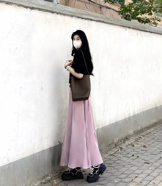 嘗試過黑粉穿搭的姐妹,大概就會知道這一對配色有多時髦了,活力滿滿的夏天穿搭,黑色短袖t恤,版型超正的,正肩的設計,很好修飾你上半身比例,加上黑色,視覺上也非常顯瘦,與粉色高腰百褶半身長裙相配,西裝面料,垂墜感相當不錯。