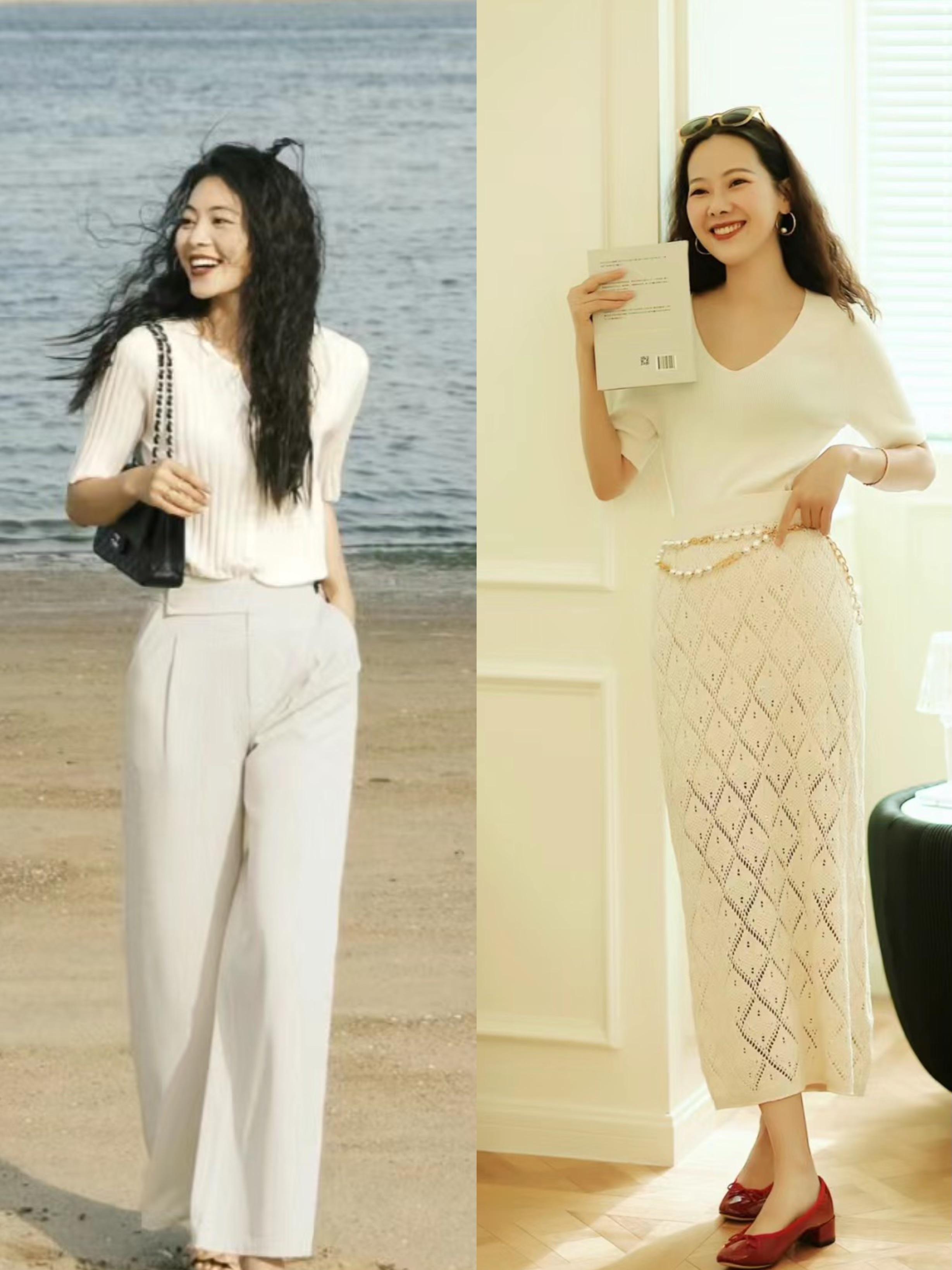 看時尚博主的穿搭就明白,針織短袖早已成爲潮流單品,走進大衆衣櫥裏。