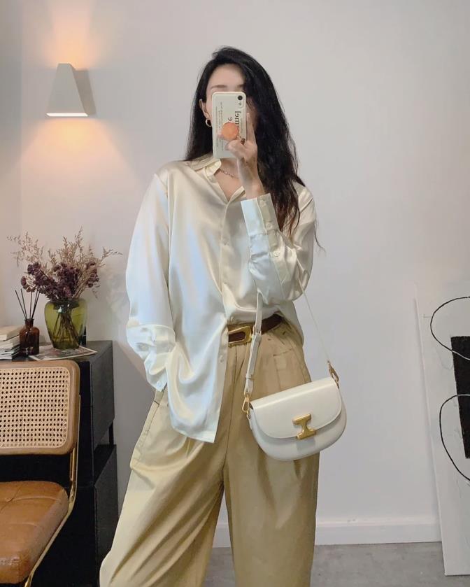 有人或許會覺得真絲襯衫不好搭配,其實真的沒有,不管是搭配裙裝,還是褲裝,真絲襯衫都可以讓你展現出不一樣的魅力風格。與半身裙搭配,則更顯女性的溫婉與知性,搭配幹練的西裝褲、牛仔褲則顯得利落又休閒。