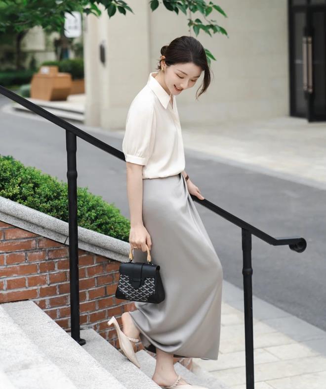 可不要覺得真絲半身裙難駕馭和搭配,其實正好相反,它可是很不錯的時尚搭配神器,與各種風格的上衣搭配都可以。無論是復古風、甜美風,還是簡約風,都能輕鬆駕馭,搭配上一雙高跟鞋,既提高了個子,又能瞬間提升了個人的氣質。