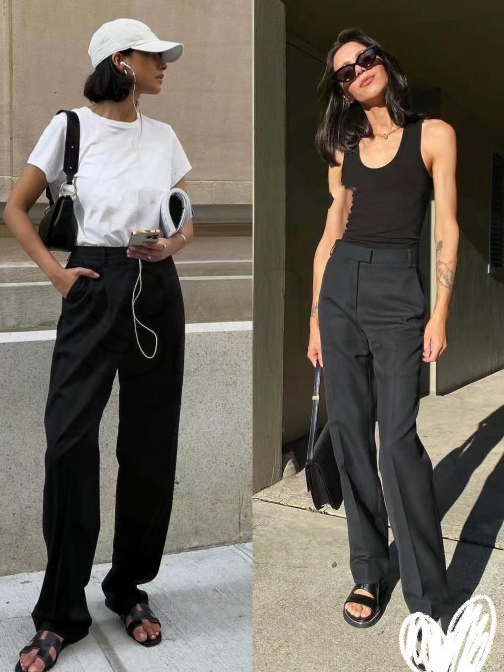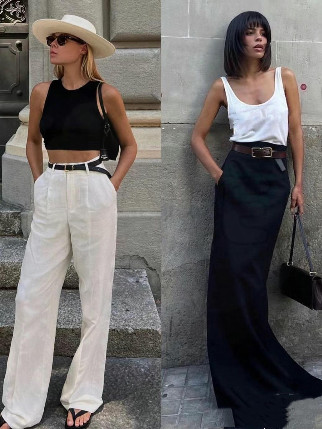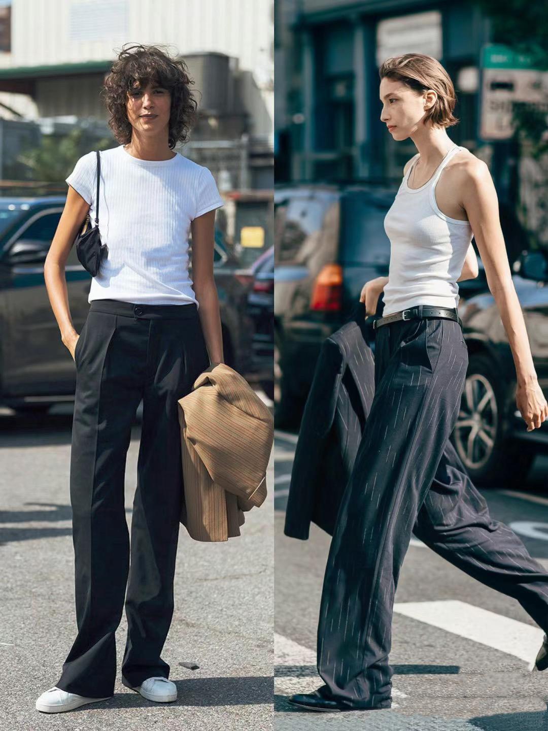 就像白色小背心搭配黑色西裝褲,就是一種經典的三七分割。白色小背心修身的剪裁,配上黑色西裝褲,簡約又醒目的搭配,透着幾分清涼,讓夏日穿搭更加惹眼。