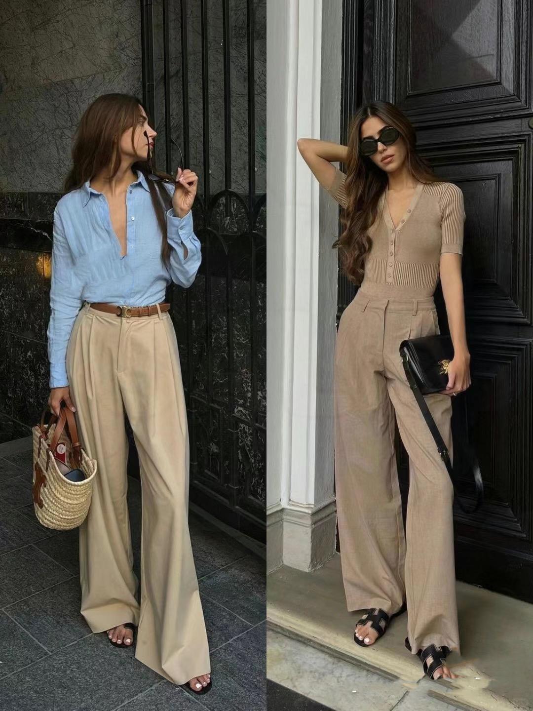 寬鬆的襯衫、或者修身的針織T恤,都可以配高腰的西裝褲來穿着。巧妙的塞個衣角,就可以表現出高腰線。