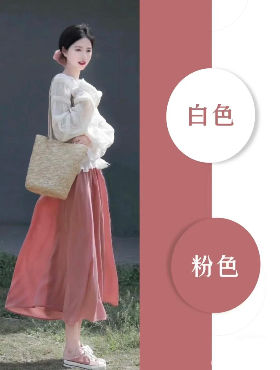 白色+粉色的配色,乾淨且溫柔,帶着小女子的甜美稚嫩,能夠激發起更強大的保護欲。穿着粉白配色的衣服,任誰看了都心生憐愛。