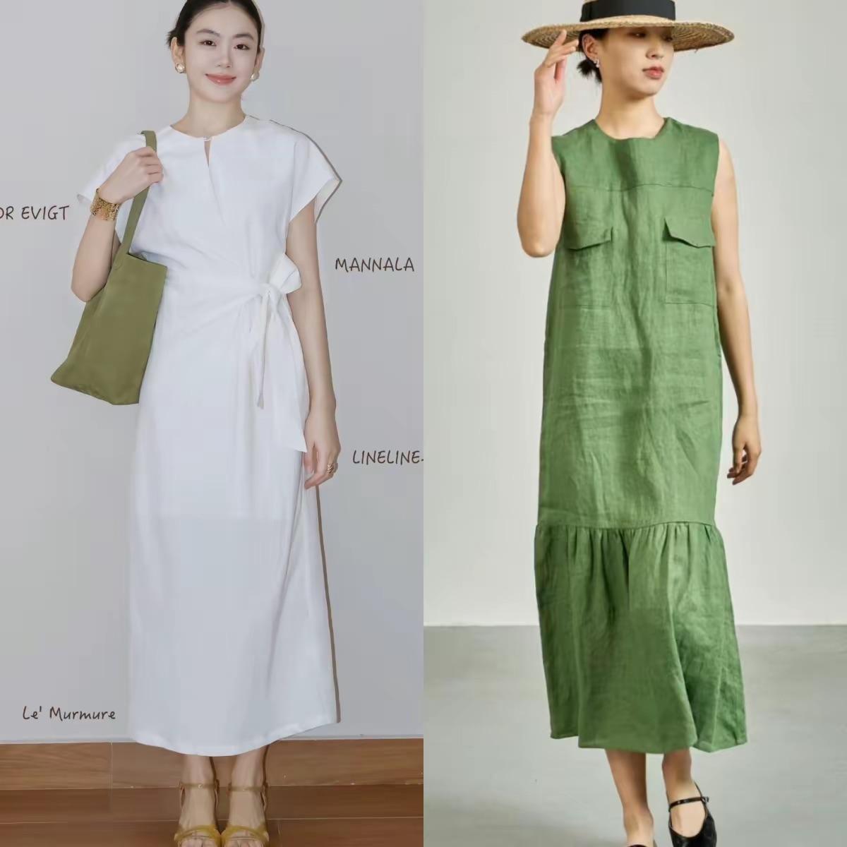 如果擔心棉麻質感的連衣裙,穿起來太過邋遢、不夠利落。我們可以選擇帶有腰帶裝飾的棉麻連衣裙。